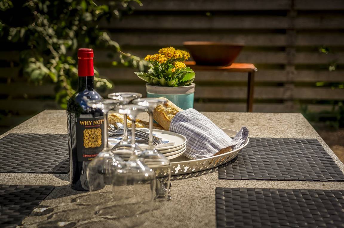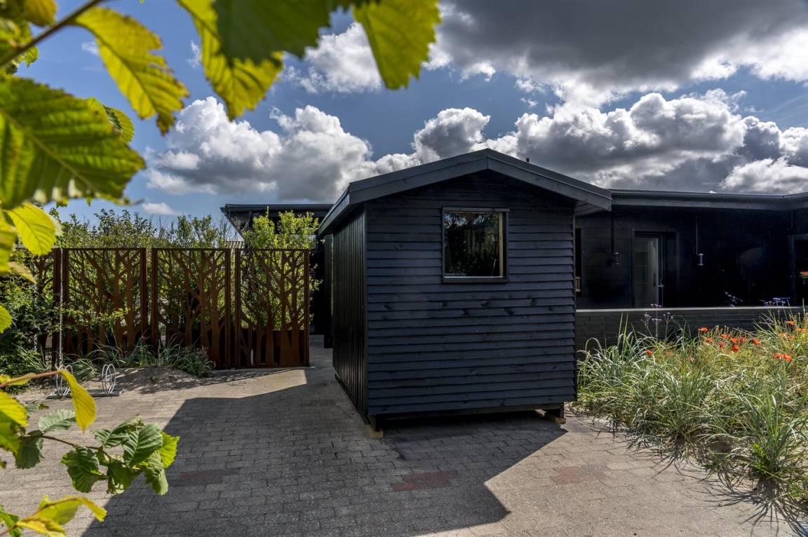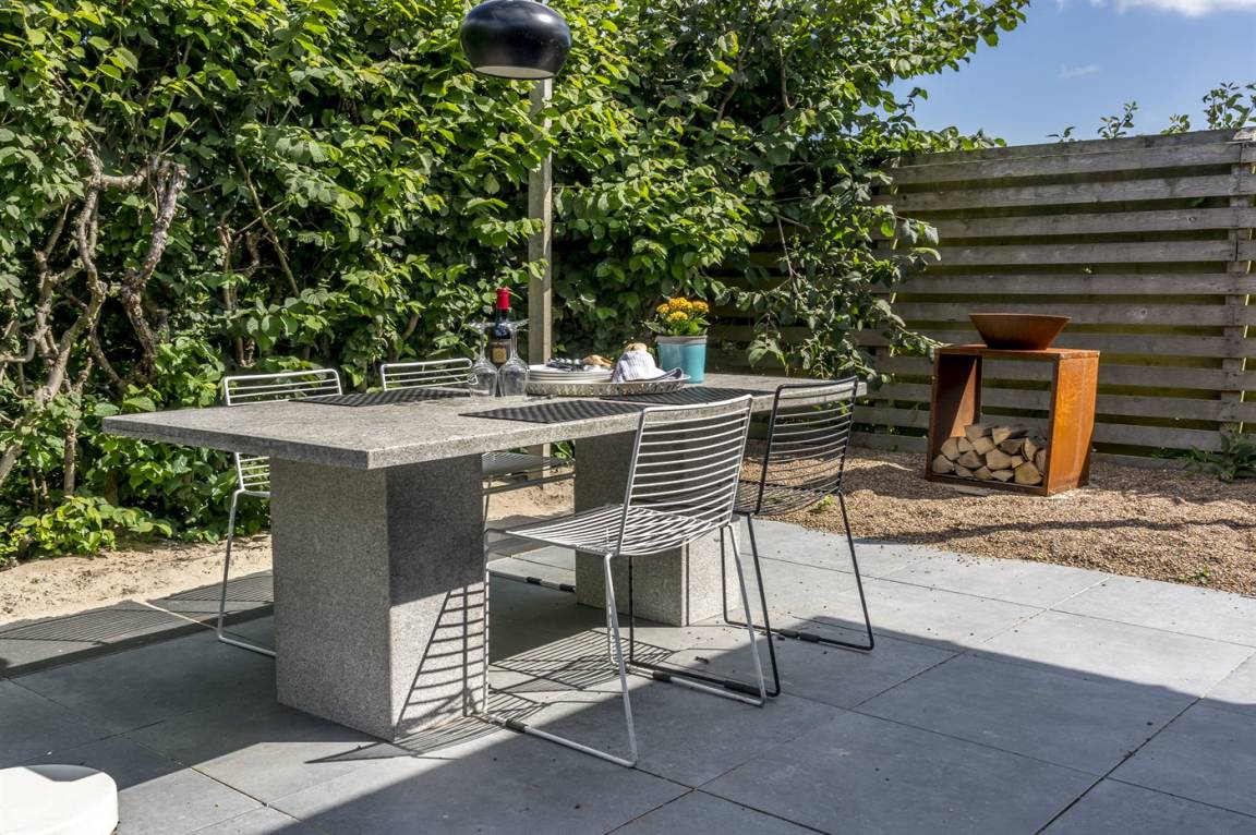 Draußen. Die Entfernung zum Meer beträgt 900 m. Die nächste Einkaufsmöglichkeit liegt 900 m entfernt. Es steht ein offenes Terrassenareal zur Verfügung. Es steht ein Grill zur Verfügung. Es ist ein Ladestecker für Elektroautos installiert. Parkplatz auf dem Grundstück.