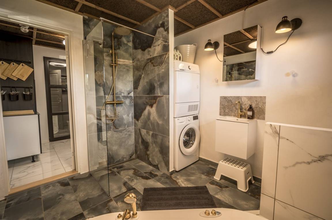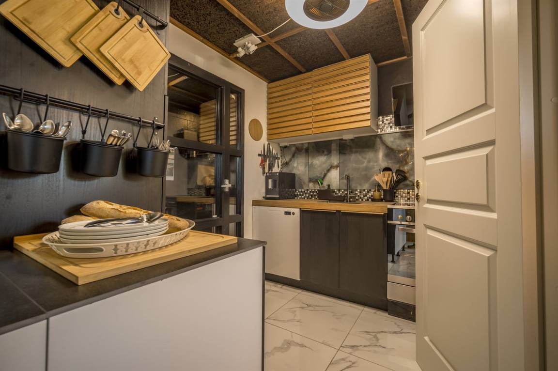 KücheDie Küche ist mit Kühlschrank ausgestattet. Außerdem gibt es 4 Induktions-Kochzonen, Umluftofen, Mikrowelle sowie Geschirrspüler.