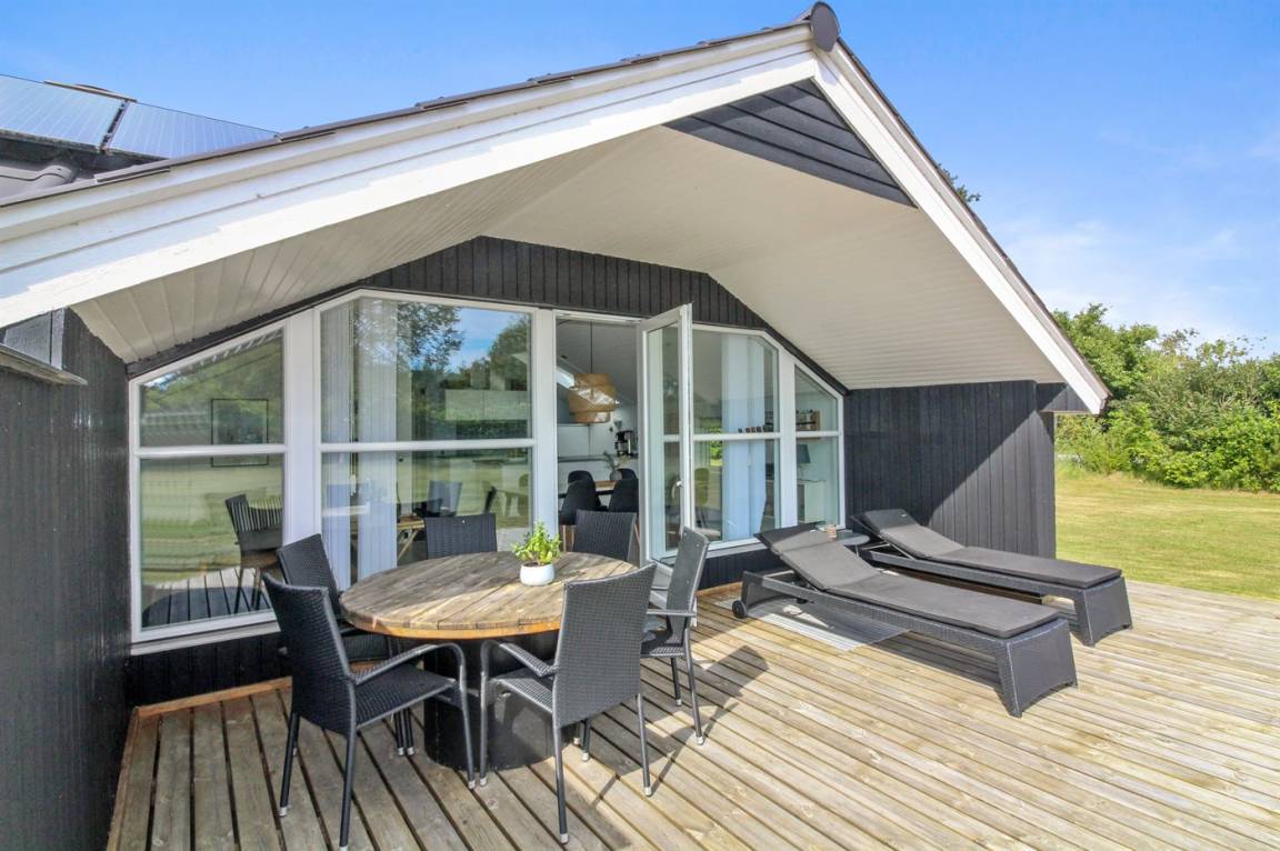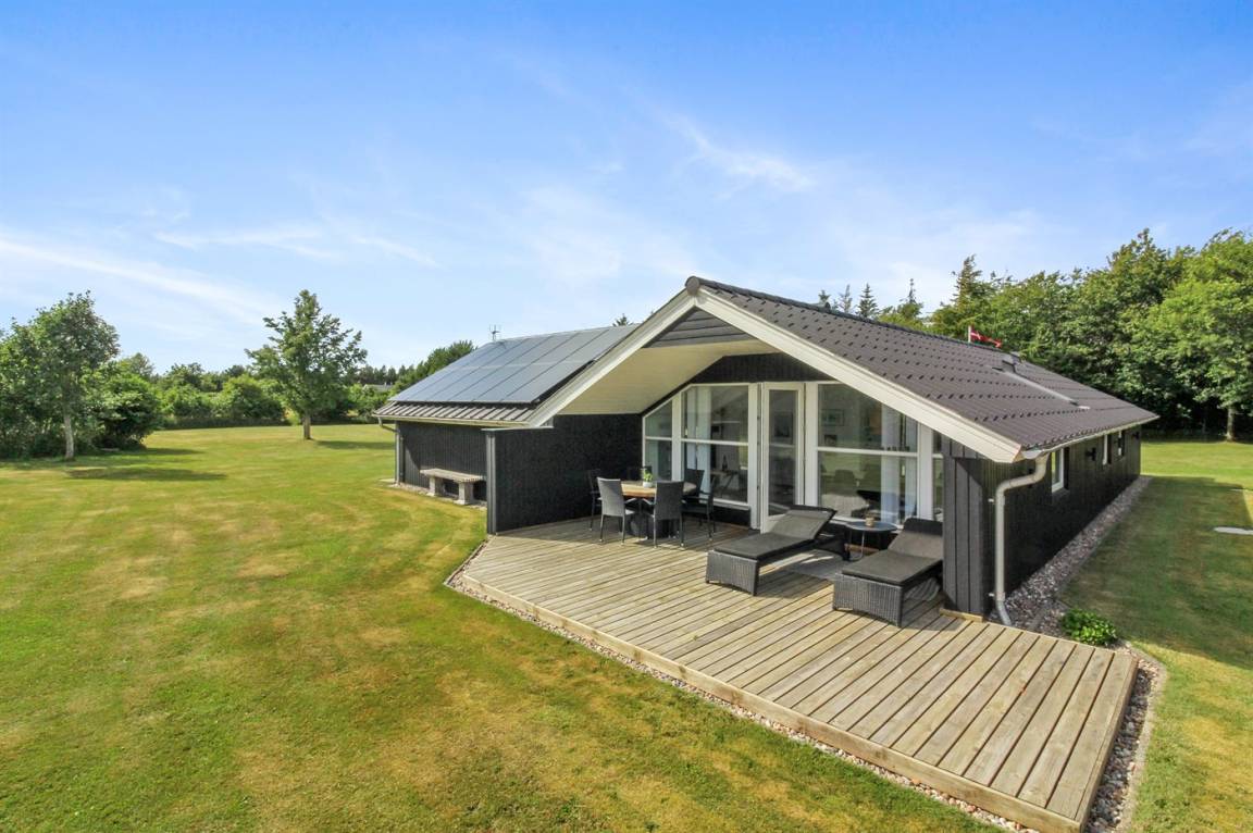 DraußenDie Ferienunterkunft liegt auf einem 4000 m² großen Naturgrundstück. Die Entfernung zum Meer beträgt 1100 m. Die nächste Einkaufsmöglichkeit liegt 600 m entfernt. Es steht ein offenes Terrassenareal zur Verfügung. Außerdem gibt es überdachte Terrasse. Trampolin.Lagerfeuerstelle. Es steht ein Grill zur Verfügung. Parkplatz auf dem Grundstück.