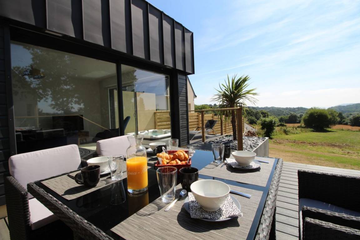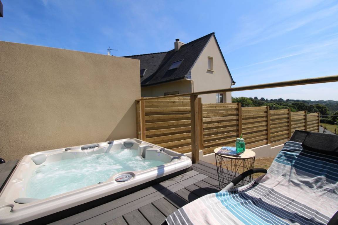 „Un très bon séjour en famille dans un gîte super et au calme. La maison est très bien aménagée et équipée. La grande terrasse, le jacuzzi et la vue sur la mer sont des vrais plus. Les propriétaires sont charmants et donnent de bonnes et nombreuses informations touristiques et gastronomiques. On recommande vivement cette adresse !“
