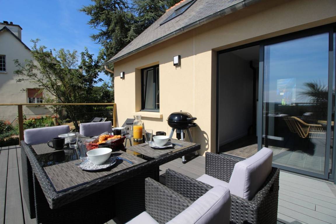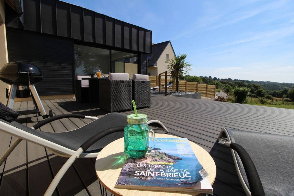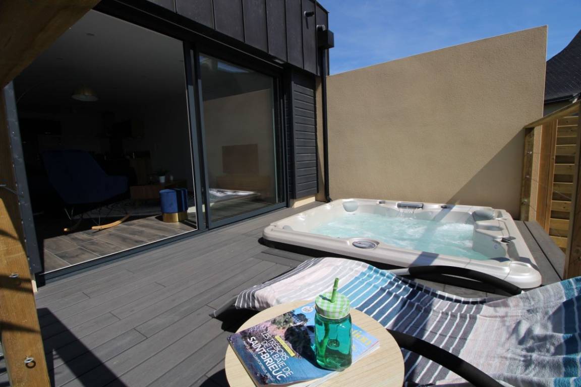 „Wir waren Ende August, Anfang September im Gîte. Die Kommunikation mit den netten Vermietern und der Empfang waren prima. Wir fanden das Haus super, insbesondere ist die Terrasse mit den Terrassenmöbeln, dem Jacuzzi und der Aussicht ein Knüller, auch dass wirklich alles vorhanden war, insbesondere Waschpulver für die Waschmaschine, die ersten Nespressokapseln etc.. Wir haben Binic als Ort auch wirklich sehr angenehm gefunden, die Strände der Umgebung zum Baden oder Spazierengehen und den Zöllnerweg ebenfalls und konnten von da prima Ausflüge zu der Smaragdküste oder der rosa Granitküste machen. Die Einkaufsmöglichkeiten vor Ort inklusive Bäcker sind in 3 Minuten Fahrtstrecke entfernt.“