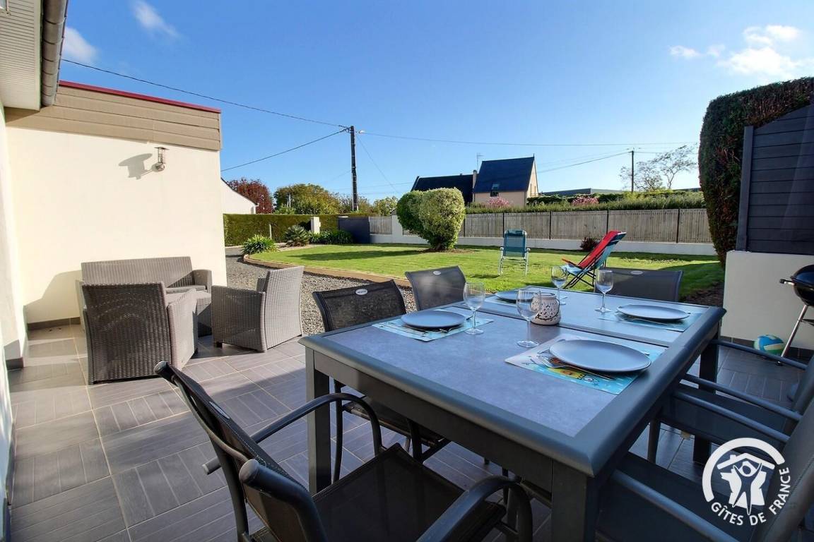 „Bon séjour, gîte confortable dans un quartier résidentiel et calme, à proximité des commerces et de la plage des Godelins.“
