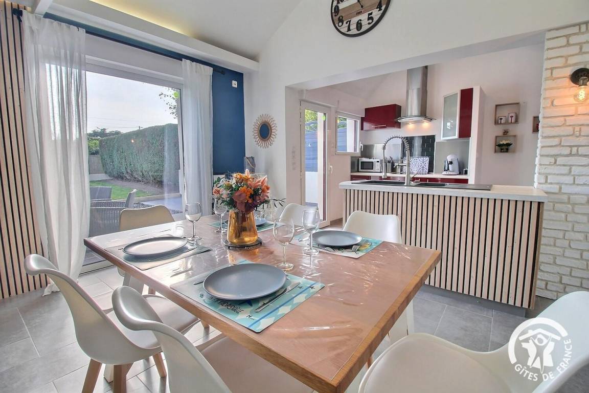 „Nous sommes ravis de notre séjour de juillet 2025 (c'était d'ailleurs le cas en juillet 2024).La maison est agréable et confortable. La décoration est intéressante. La terrasse est très pratique et l'espace pelouse devant apporte la partie nature directement dans la location. Les commerces sont à proximités et la plage des Godelins satisfait parfaitement le besoin d'océan. Nous y retournerons;-)“