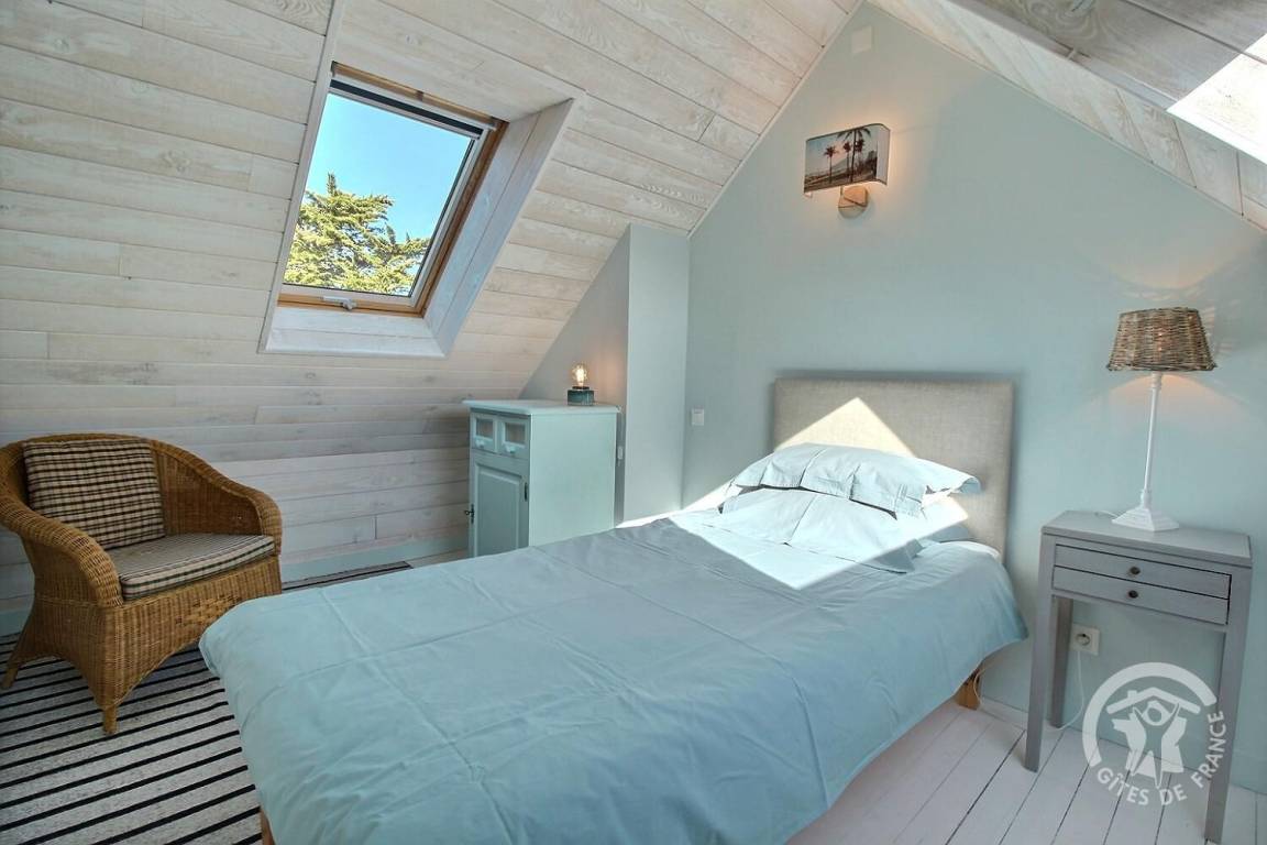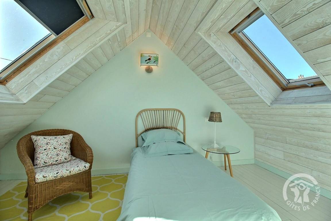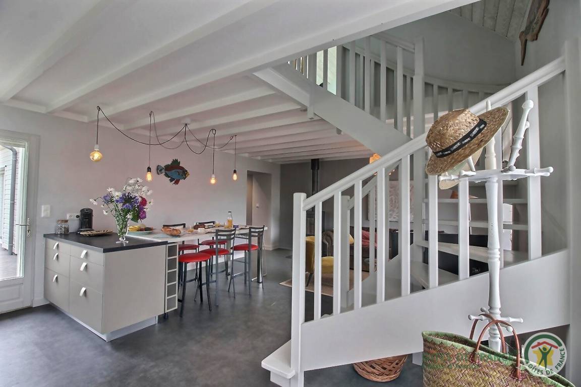 „We enjoyed our stay in Les Flots so much. Gilles and Laurence were excellent hosts, very warm and welcoming. In our opinion the Gite is well located. A short walk to the beach and the super U with an abundance of other beautiful beaches within a short drive. Our children loved the zoo at Tregomur, also only 15 min away. The facilities at the Gite are excellent. The kitchen has everything you need and more. The decor is beautiful and the beds are super comfy. All appliances are high spec and there are lots of lovely touches like extra cushions and blankets. I’ve already recommended Les Flots to a friend and we very much hope to return in the future. Worth a note: The two single rooms are upstairs and a long way from the master bedroom downstairs. It’s also an open staircase so if you have very small children you might want to consider this.“