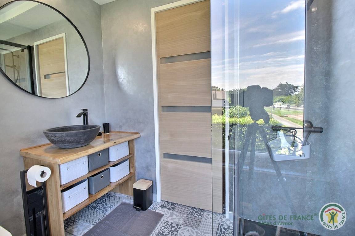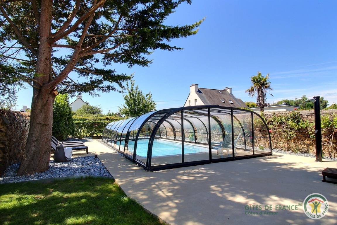 „Superbe gite, véranda et piscine chauffée très agréables. Accès à pieds à la plage du Vau Chaperon (moins de 10 minutes, très calme, à proximité des Godelins). Nous recommandons“