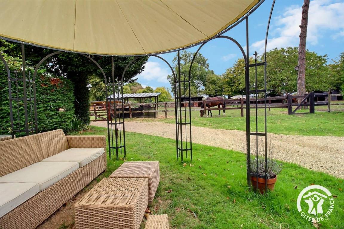 Genießen Sie den schönen Blick auf das Anwesen und seine Pferde (Reiten mit einem Reitlehrer ist vor Ort gegen Aufpreis möglich).