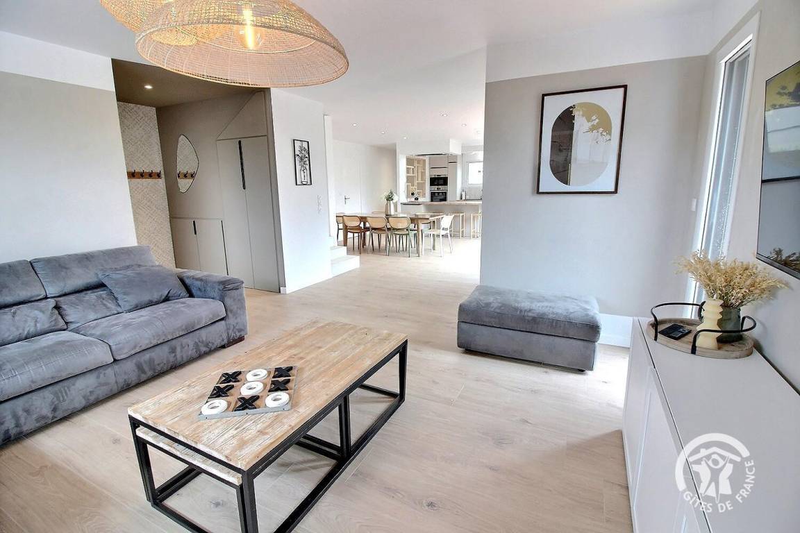 „Très belle maison, bien décorée, lumineuse. Pas de wifi ce week-end mais le problème n'est pas lié à la maison, j'espère que vous avez pu résoudre cela.2 petites améliorations: Une rampe dans l'escalier qui mène au 1er étage, un rideau ou un pare douche pour la baignoire en haut.“