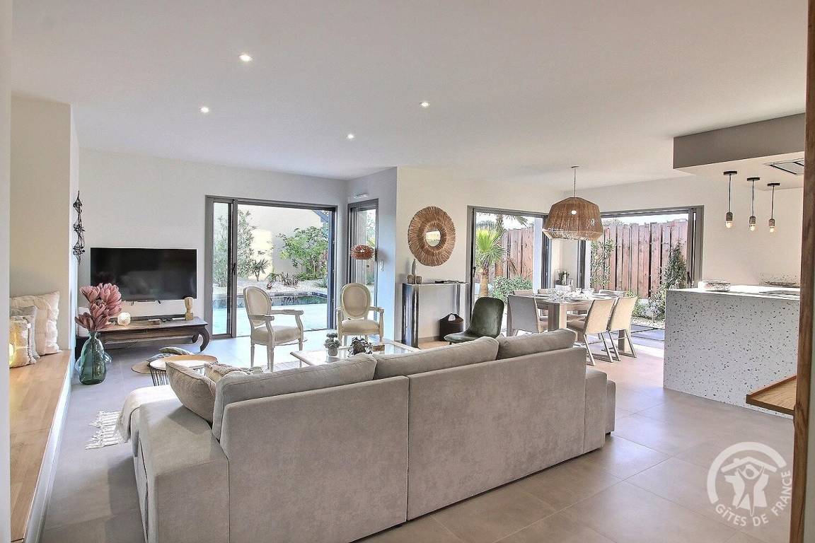 „Nous avons séjourné une semaine en famille dans ce somptueux gîte qui a, en plus, l’avantage d’être très bien situé. La villa en elle même est parfaite: Piscine, jacuzzi, cuisine toute équipée, plusieurs salles d’eau, une buanderie, etc. La plage la plus proche est située à 15 minutes à pieds et le chemin pour y accéder est agréable. Pour agrémenter le tout: Une très bonne boulangerie ainsi qu’un grand magasin Super U se trouvent à proximité. De quoi passer des vacances parfaites. Les seuls points négatifs que nous avons relevés sont dus à des travaux qui étaient alors réalisés dans le voisinage et à la literie qui aurait pu être un peu plus confortable. Pour le reste tout était parfait ! Nous renouvellerons avec grand plaisir l’expérience.“