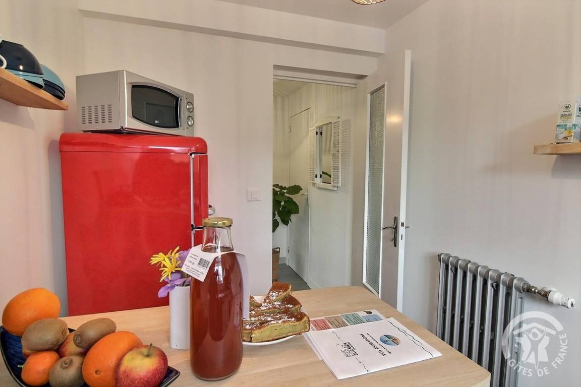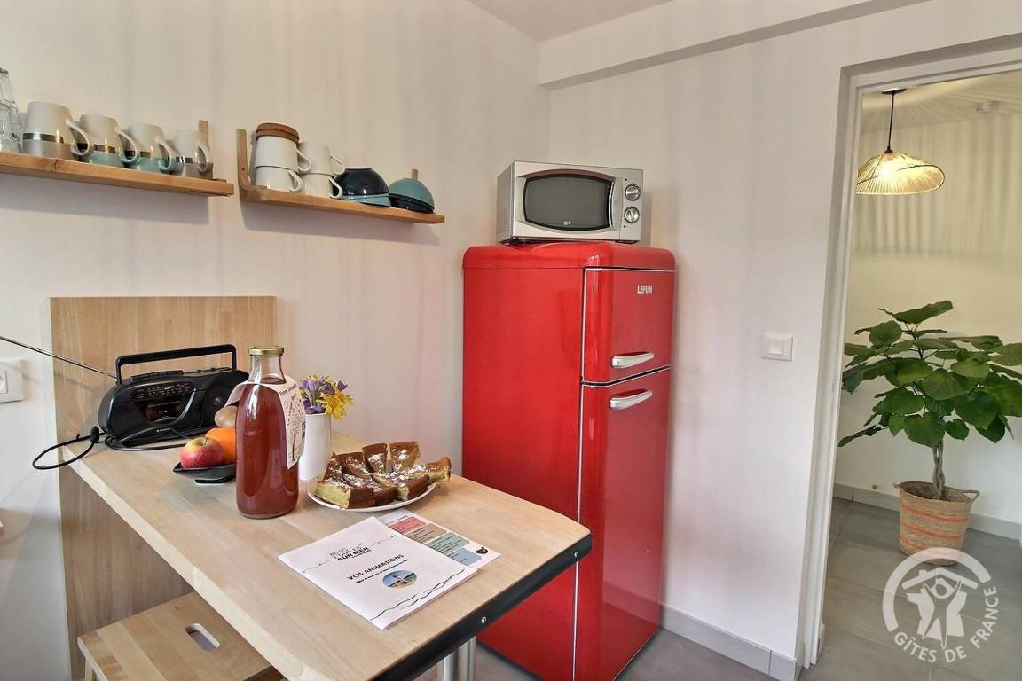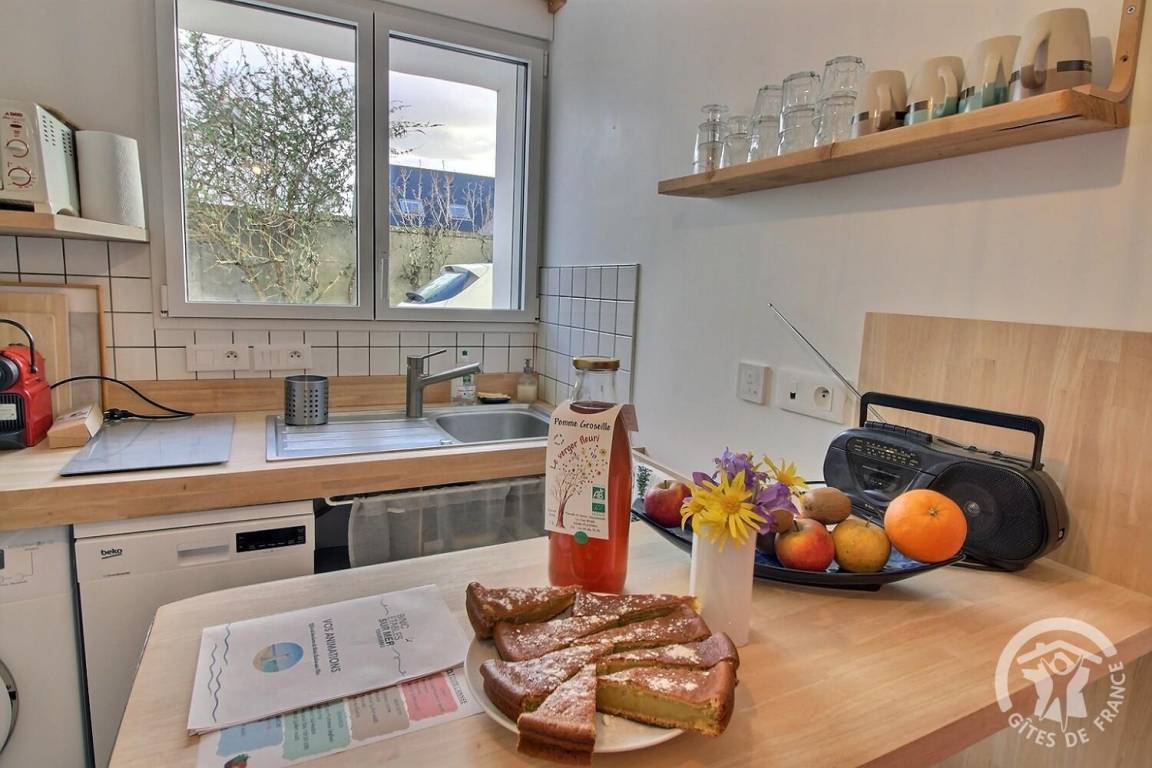 „Gîte confortable et fonctionnel, tout à proximité des commerces et des lieux de balade (GR 34). On s'y sent totalement en vacances... à tel point que nous n'y avons trouvé aucune pendule ou autre indication de l'heure ! Merci à Gaëlle et Mathieu pour leur accueil.“