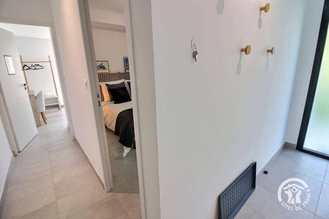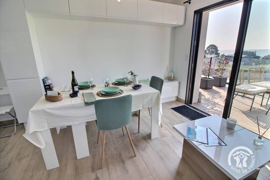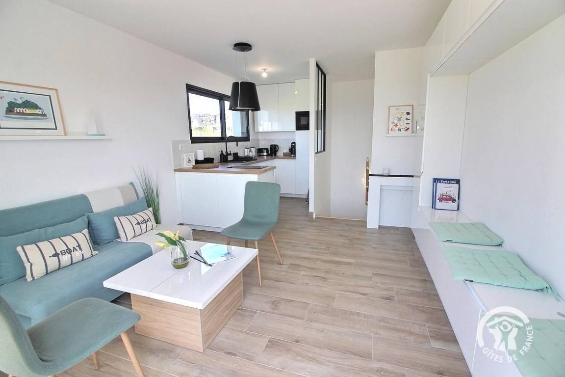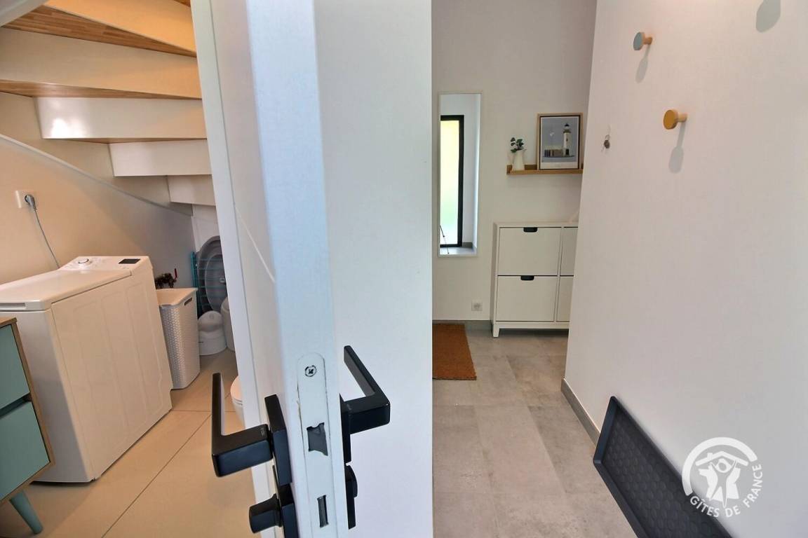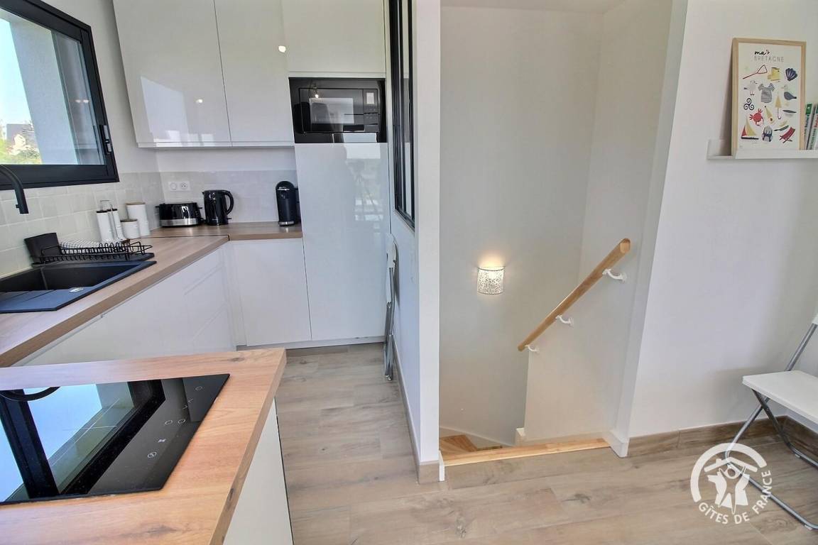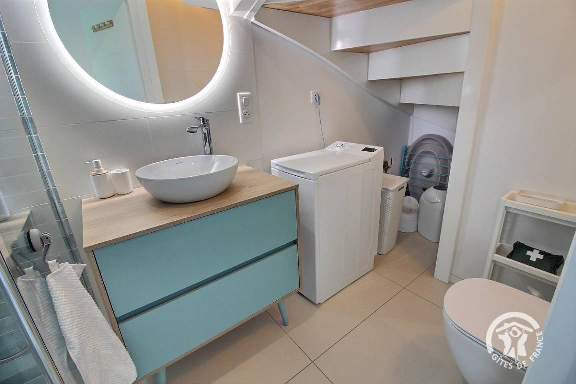 „Superbe séjour, très belle vue mer du balcon. Petite attention lors de l'arrivée. Appartement petit mais bien agencé et avec beaucoup de rangement et décoré avec goût. Le parking devant la porte est un plus. Il manque juste des rideaux dans les chambres qui sont au rdc. Nous recommandons ce gîte.“