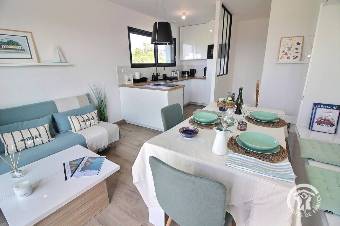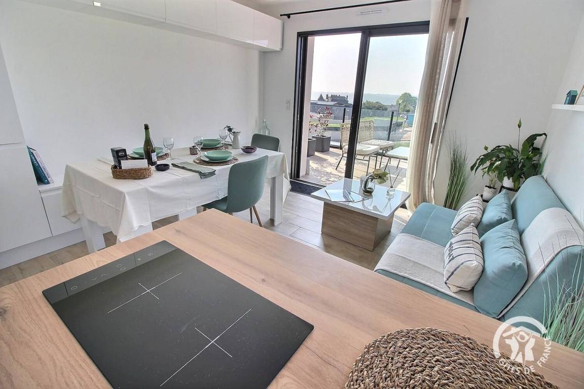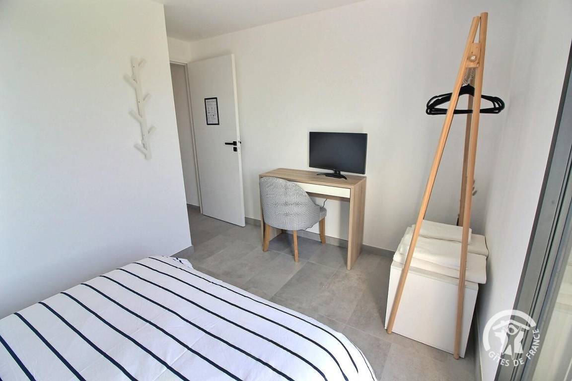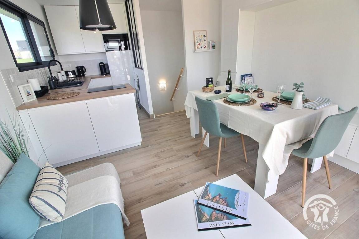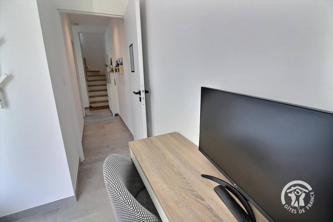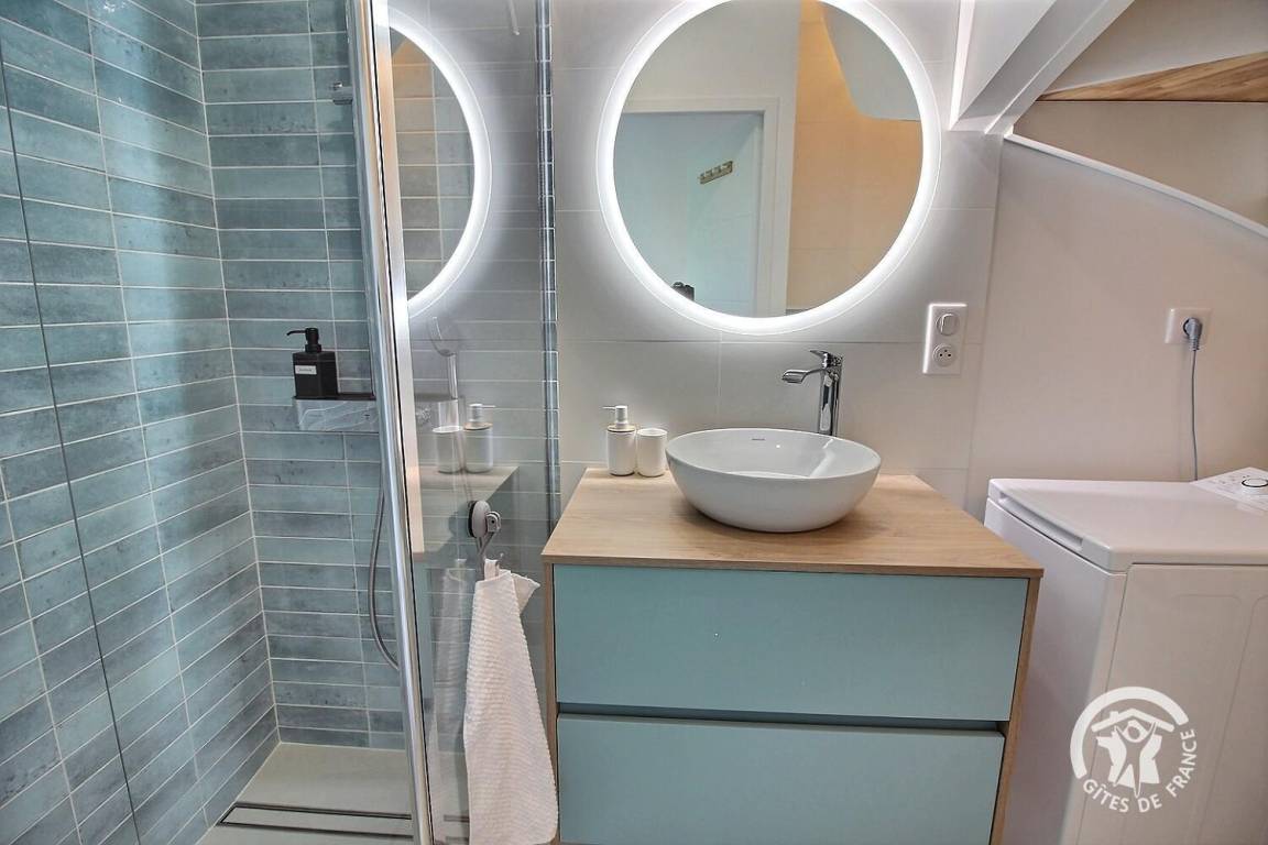 „Superbe séjour, très belle vue mer du balcon. Petite attention lors de l'arrivée. Appartement petit mais bien agencé et avec beaucoup de rangement et décoré avec goût. Le parking devant la porte est un plus. Il manque juste des rideaux dans les chambres qui sont au rdc. Nous recommandons ce gîte.“