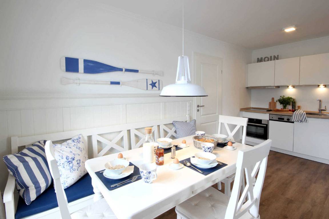 Durch den Flur gelangen Sie in den gemütlichen Wohnraum mit großem Flachbild-TV mit integriertem Radio, einen separaten Essplatz, einem Schlafsofa (Liegefläche 2m x 1.65m) das genügend Platz für die 4. und 5. Person bietet und einer gut ausgestatteten Küchenzeile unter anderem mit Geschirrspüler, Mikrowellen-/Backofenkombination, Induktionskochfeld, Kühlschrank, Toaster, Wasserkocher und Kaffeemaschine. Weiterhin gehören zwei getrennte Schlafzimmer zur Wohnung, wobei das Kinderzimmer Platz für eine Bettcouch mit einer Matratze (1,80m x 70cm!) bietet. Im Hauptschlafzimmer befindet sich ein Doppelbett, Flachbild-TV und ein großer Kleiderschrank befindet. Natürlich können Sie ebenfalls ein Badezimmer mit Doppelwaschbecken, WC und Dusche nutzen. Ein wohnungseigener Parkplatz steht direkt am Haus zur Verfügung sowie ein kostenfreier Internetzugang. Highlights: hauseigene Sauna (gegen Gebühr) zum Entschleunigen, Münzwaschmaschine, Münztrockner und Fahrradabstellraum!
