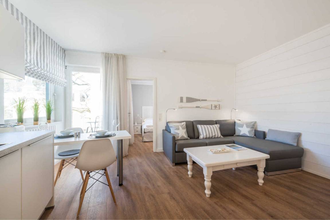 Neben dem Wohnraum mit offener Küche gibt es einen Schlafraum, sowie ein Badezimmer mit Waschtisch, Dusche und WC. Der Schlafraum ist mit einem Doppelbett, TV und einem großen Kleiderschrank ausgestattet. Außerdem finden Sie im komfortablen Wohnbereich neben der Sitzecke mit Schlafsofa für eine dritte Person einen separaten Essplatz, Flachbild-TV mit integriertem Radio und kostenlosem Internetzugang. Die moderne Küche ist mit Geschirrspülmaschine, Mikrowelle, Cerankochfeld, Kühlschrank und diversen Kleingeräten ausgestattet.
