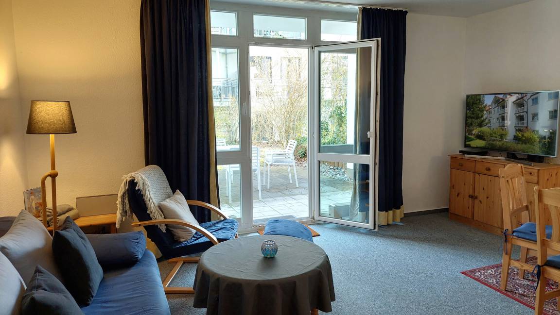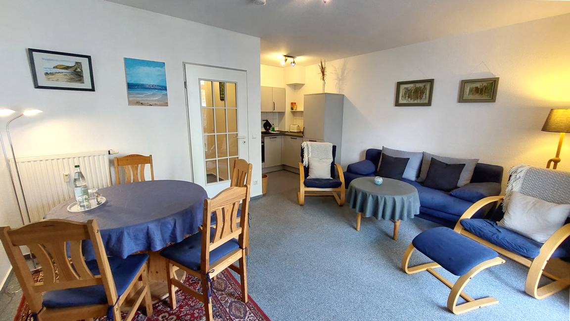 Ihre 2-Zimmer-Nichtraucherwohnung 90814 hat eine Größe von ca. 50 qm und ist für bis zu 4 Personen (3 Erwachsene [&] 1 Kind) eingerichtet. Sie befindet sich in der Wylichstraße 6e, im Erdgeschoss und verfügt über eine großzügige Terrasse mit Strandkorb nach Süden sowie einen Stellplatz im nahegelegenen Parkhaus Granitz. Die gemütliche Wohnung teilt sich auf in einen Wohnraum mit direktem Zugang zur Terrasse sowie eine Küchenzeile, ein Tageslichtbad, ein Schlafraum und Flur mit Garderobe. Im Wohnraum finden Sie neben der Sitzgruppe mit Schlafsofa noch einen separaten Essplatz. Ein Flachbildfernseher, WLAN sowie eine Musikanlage mit CD gehören zur technischen Ausstattung. Der Schlafraum ist mit einem Doppelbett, großzügigem Kleiderschrank sowie Außenjalousie für eine angenehme Nachtruhe ausgestattet. Das Badezimmer erwartet Sie mit einem Waschbecken, Dusche, Waschmaschine und WC. Die Wohnküche beinhaltet u.a. ein 4-Platten-Kochfeld, Backofen, Mikrowelle, Kühlschrank mit kleinem Gefrierfach, Kaffeemaschine, Wasserkocher und Toaster.