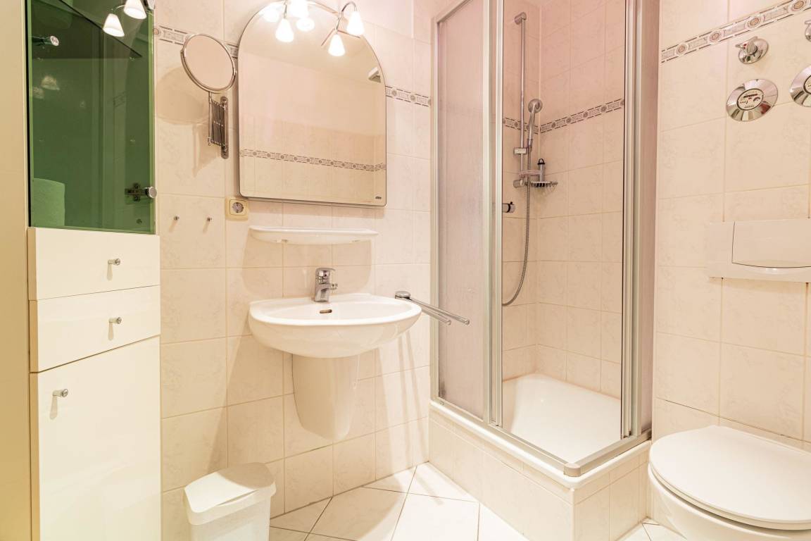 Das helle Bad lädt beim Frisch machen außerdem zum Entspannen und wohl fühlen ein.