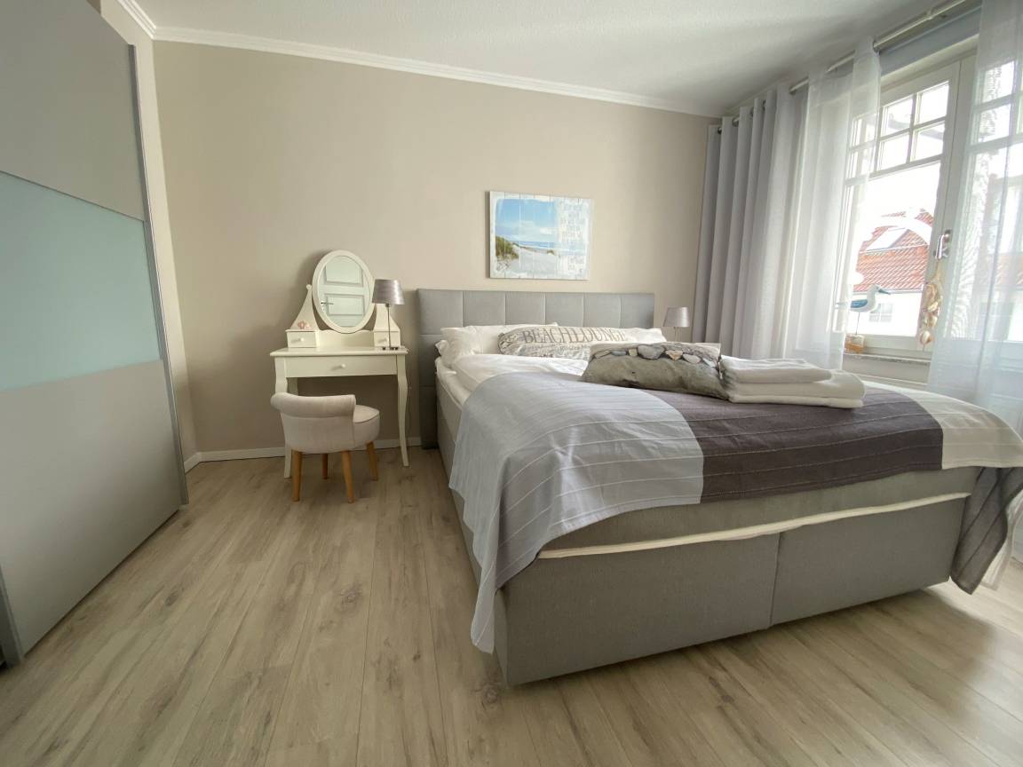 Ihre helle, großzügig geschnittene und geschmackvoll eingerichtete 2-Raum-Ferienwohnung 21RB5 für Nichtraucher (ca. 53 qm) im 1. Obergeschoß der schönen Villa Laetitia. Ein geschützter Balkon nach Südwesten ausgerichtet, ist der Wohnung vorgelagert und lädt zum Sonnenbaden ein. Die Wohnung bietet ein außergewöhnliches Wohlfühl-Ambiente und ist für eine Belegung mit max. 4 Personen ausgelegt.