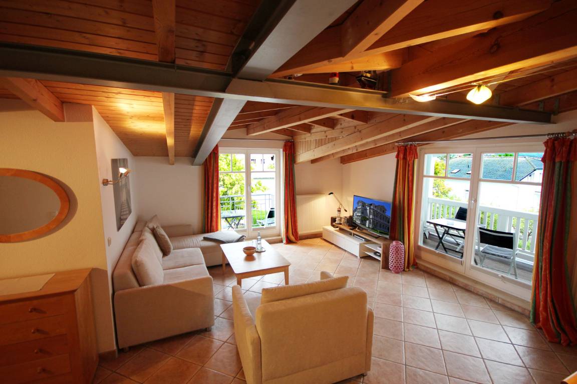 Diese 2-Raum-Nichtraucher Dachgeschosswohnung hat ein Schlafzimmer mit einem Doppelbett, Kleiderschrank sowie Flachbild-TV. Der Wohnraum verfügt über eine gemütliche Schlafcouch, Flachbildfernseher, Radio und eine neu integrierte Küche (2016) mit Geschirrspüler, Induktionskochfeld, Backofen mit Mikrowellenfunktion, Kaffeemaschine, Wasserkocher, Toaster, freistehender, großer Kühl-/Gefrierkombination und großem separaten Essplatz. Im Badezimmer finden Sie einen Waschtisch, WC und Dusche vor.