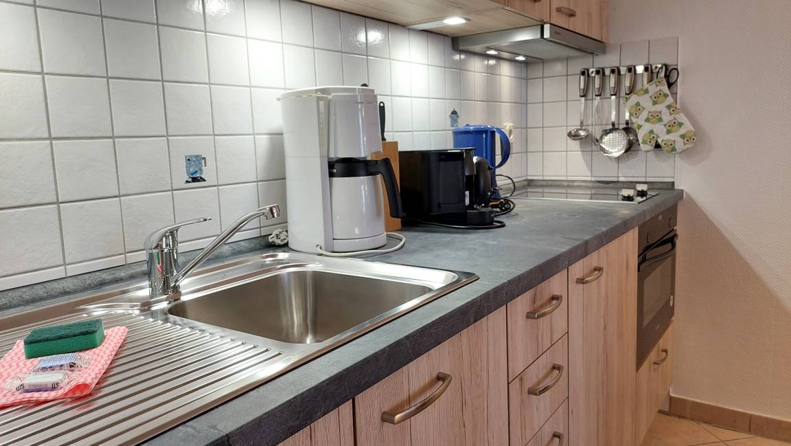 Mit Ceranfeld, Kühlschrank (samt Gefrierfach), Nespresso-Kaffeemaschine und Geschirrspüler steht alles zur Verfügung um sich auch im Urlaub selbst zu verpflegen.