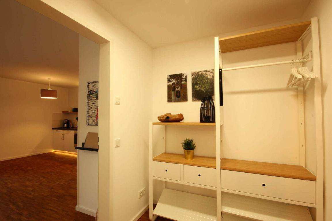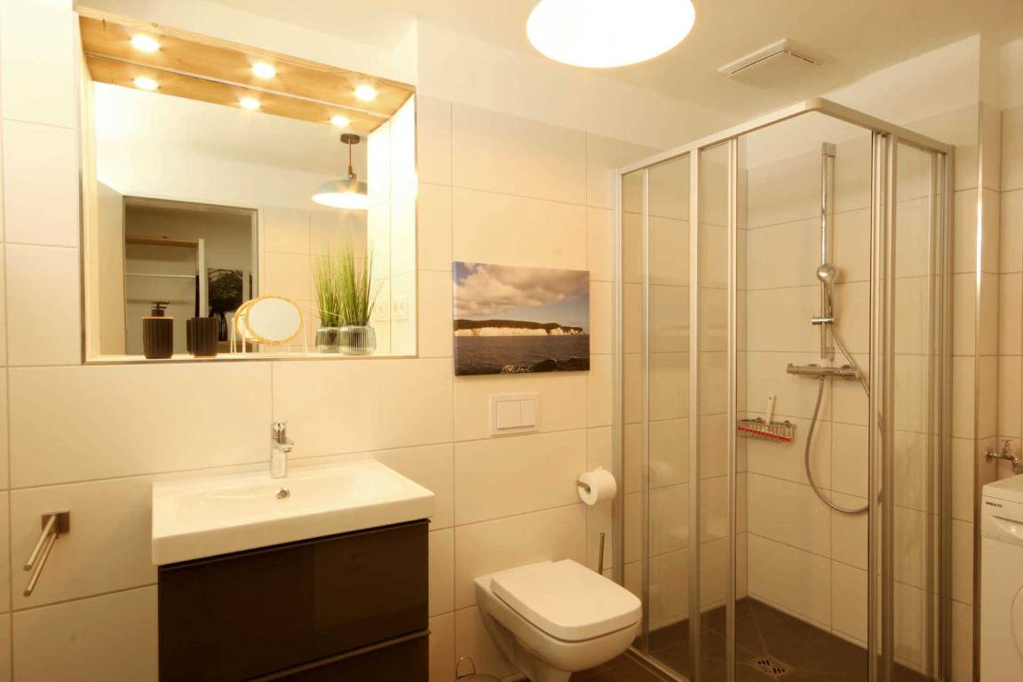 Die Wohnung verfügt über einen Flur mit Garderobe sowie Wandspiegel, einen gemütlichen Wohnbereich mit moderner Wohnküche sowie einen Essplatz, ein schickes Schlafzimmer sowie Badezimmer. Im Wohnbereich erwartet Sie eine bequeme Sitzecke mit Schlaffunktion sowie Verdunklungsstoffen für einen erholsamen Schlaf. Der Kaminofen sorgt für gemütliche Stunden. Darüber hinaus gelangen Sie vom Wohnzimmer auf die möblierte Terrasse. Die technische Einrichtung umfasst einen großen Flachbildfernseher, eine Musikanlage sowie einen gebührenfreien WLAN-Zugang. In der komplett ausgestatteten Küchenzeile erwartet Sie unter anderem ein Backofen, Mikrowelle, Cerankochfeld, Geschirrspüler, Kühlschrank mit Gefrierfach, Kapselmaschine von Nespresso, Toaster, Wasserkocher sowie umfangreiches Kücheninventar. Das Schlafzimmer verfügt über ein modernes Boxspringbett, einen weiteren Flachbildfernseher, einen Kleiderschrank sowie Verdunklungsstoffe für eine erholsame Nachtruhe. Ein separater Abstellschrank bietet zusätzlichen Stauraum für Koffer sowie Strandutensilien. Das Bad ist mit ebenerdiger Dusche, Waschbecken, Fön, Waschmaschine und WC ausgestattet.