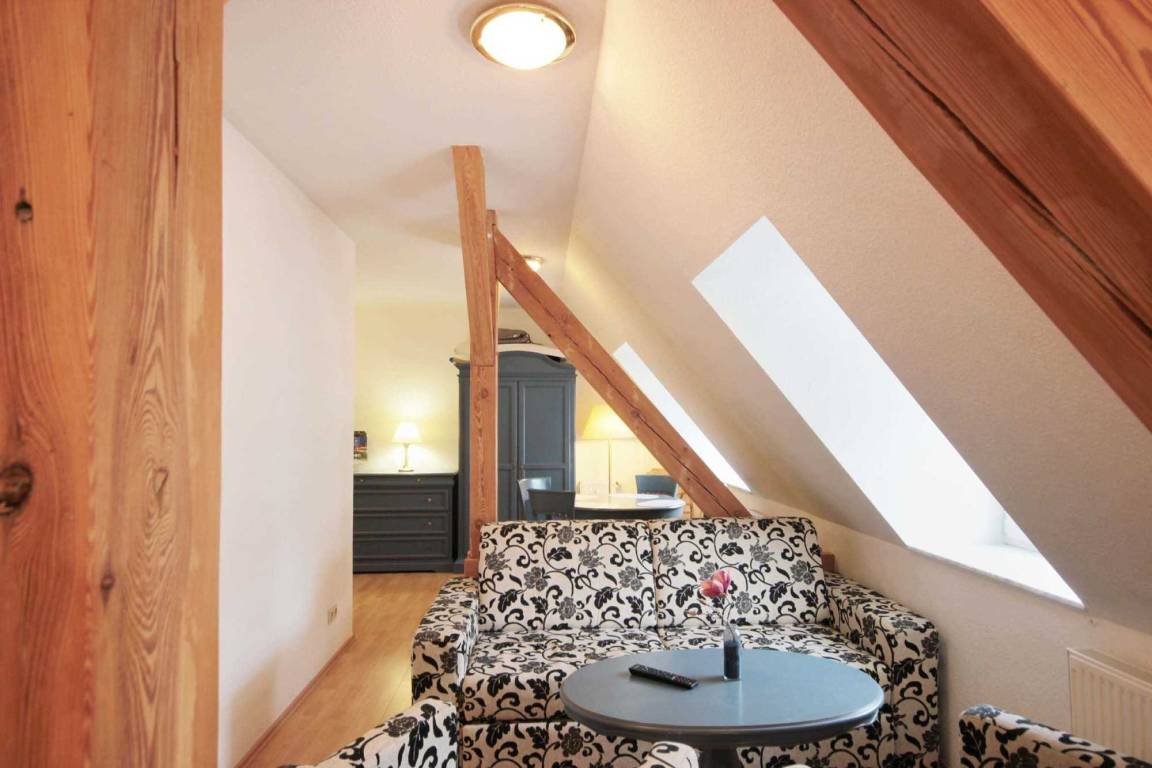 Ihre gemütliche Maisonettewohnung 26RB17 hat eine Größe von ca. 50 qm und ist für bis zu 4 Personen eingerichtet. Die Nichtraucherwohnung befindet sich im 2. und 3. Obergeschoss des Hauses.