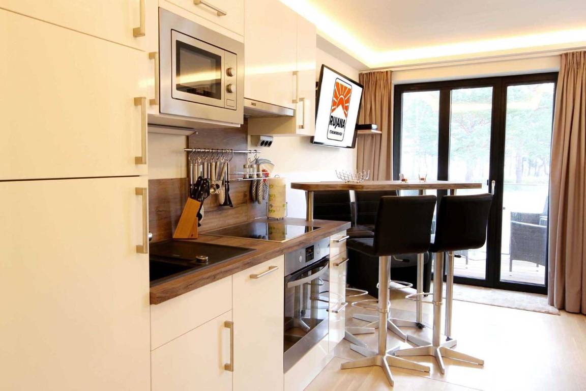 Ihre hochmoderne Wohnung 103RB8 im Haus Avida verfügt über 41qm2[nbsp] Wohnfläche und befindet sich in der 1. Etage. Die 2-Raum-Wohnung ist mit bis zu 4 Personen belegbar und verfügt einen Balkon mit Meerblick, der zum Verweilen einlädt. Die hochwertige, attraktive Ausstattung trägt zur Entschleunigung für einen erholsamen Aufenthalt bei. Ihre Nichtraucherwohnung verfügt über einen vorgelagerten Flur mit Garderobe und großem Kleiderschrank. Angrenzend ist die schöne Wohnküche mit Essbereich (Tresen) sowie einem Wohnbereich mit gemütlicher Sitzgruppe inklusive Schlafcouch und direktem Zugang zum Balkon zu finden. Die technische Einrichtung umfasst einen großen Flachbildfernseher, einen Blue ray player und eine Musikanlage von Denver. Im Küchenbereich erwartet Sie ein Backofen, Cerankochfeld, Mikrowelle, Geschirrspüler, Kühlschrank mit separaten Tiefkühlfach, eine Kaffeemaschine, Wasserkocher, Toaster, eine Brotschneidemaschine sowie umfangreiches Kücheninventar.