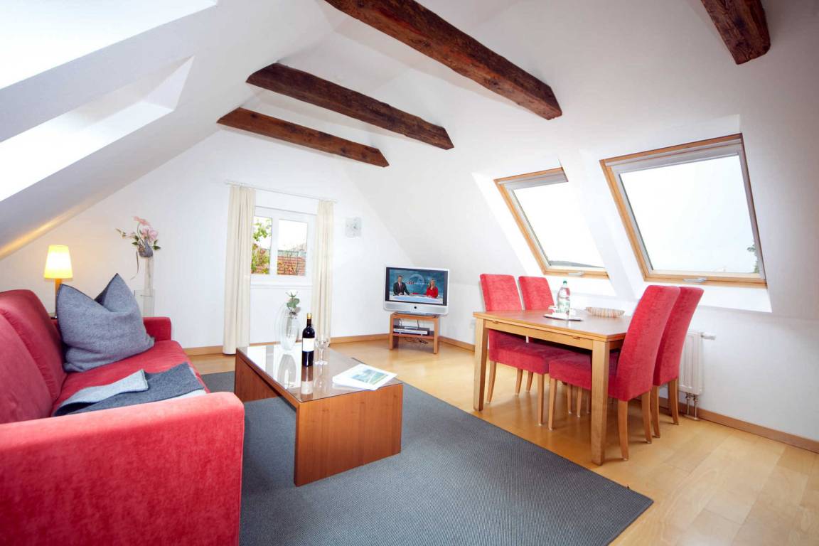 Ihre moderne Ferienwohnung 32RB10 befindet sich im Dachgeschoss. Die 2-Raum-Wohnung hat eine Größe von ca. 70 qm und ist mit 4 Personen belegbar. Die Wohnung verfügt über einen Safe. Neben dem schön eingerichteten Wohnraum mit integrierter Küchenzeile gibt es einen separaten Schlafraum und ein Badezimmer mit Waschtisch, Dusche und WC. Das Schlafzimmer verfügt über ein Doppelbett und einen Kleiderschrank. Im gemütlichen Wohnbereich befindet sich eine Sitzgruppe mit Schlafsofa, Essplatz, TV und Telefon. Die Küche ist mit Geschirrspülmaschine, Ceranfeld, Backofen, Kühlschrank und diversen Kleingeräten komplett ausgestattet. Ein PKW-Stellplatz steht Ihnen direkt am Haus zur Verfügung.