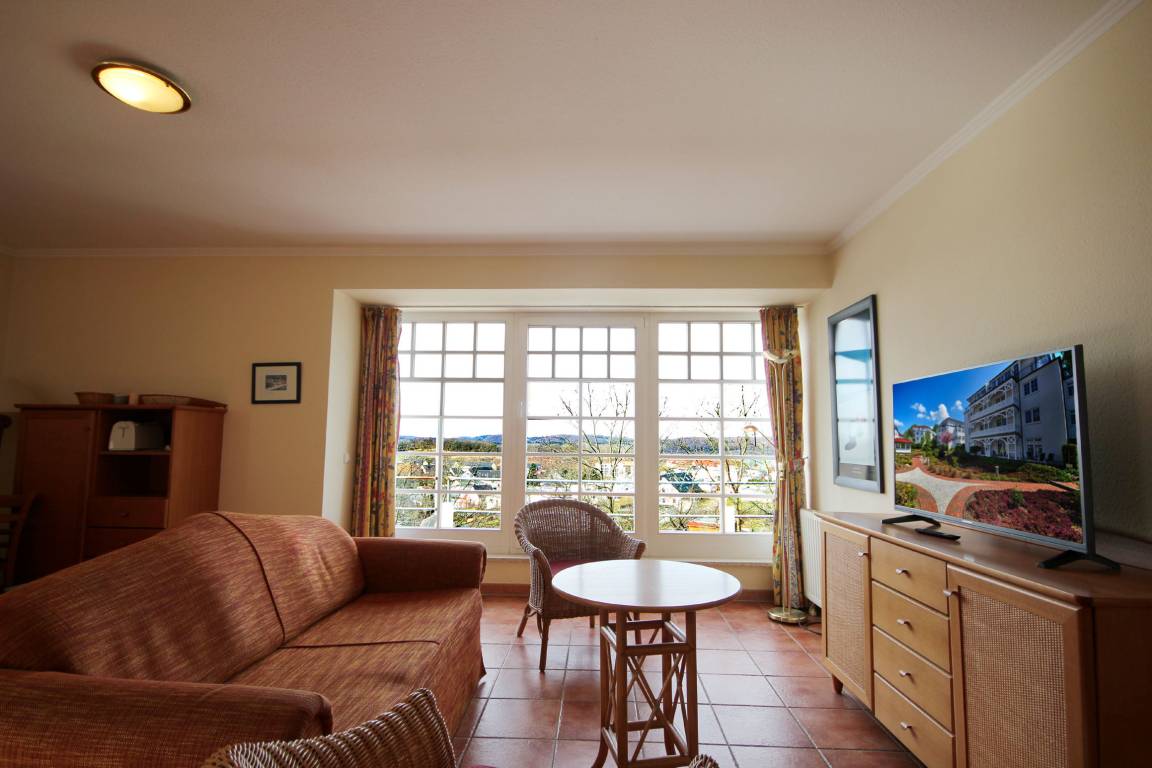 Die Unterkunft befindet auf dem Klünderberg. Die leichte Hanglage auf einem der Binzer Hügeln garantiert aus vielen Wohnungen schöne Ausblicke auf den Binzer Ortskern, teilweise bis zur Ostsee.