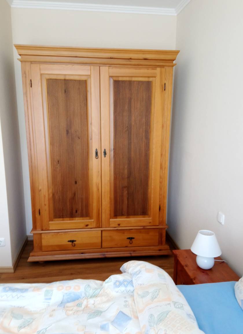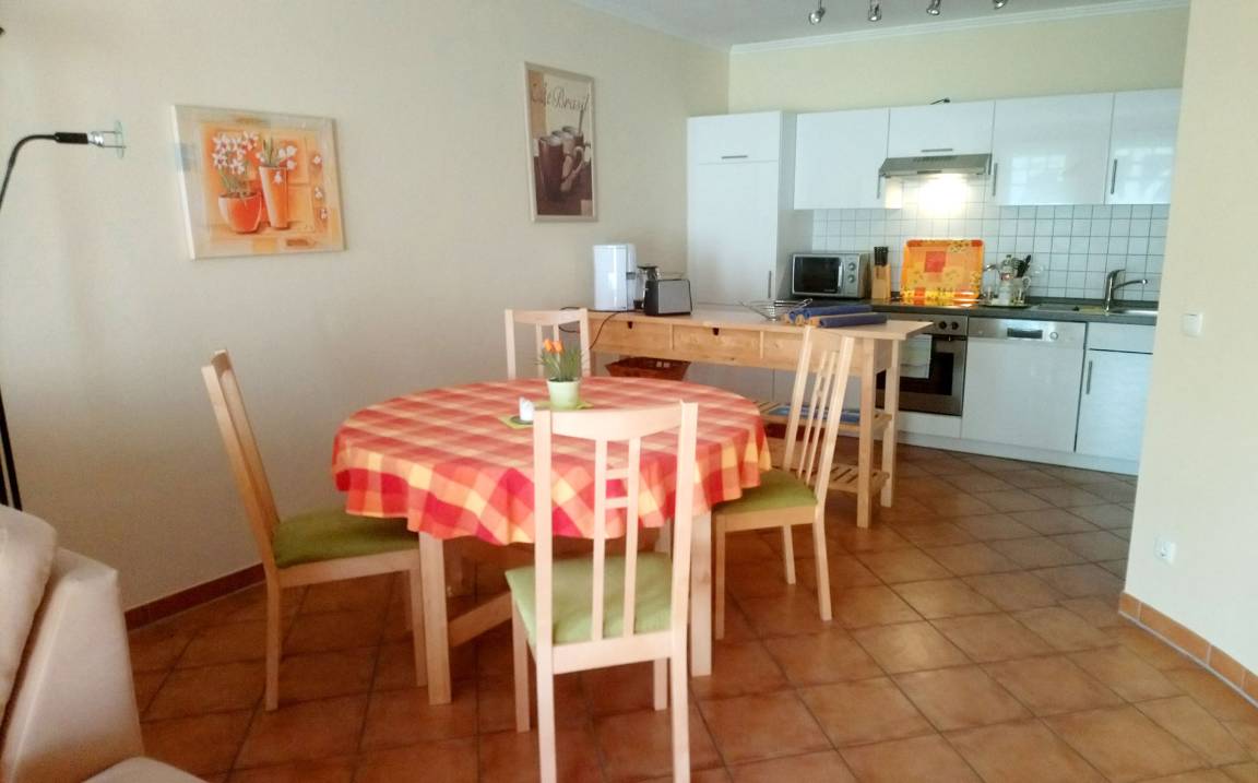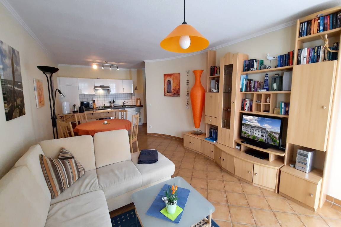 Ihre moderne Ferienwohnung 21RB4 befindet sich im 1. Obergeschoss. Die 2-Raum-Wohnung hat eine Größe von ca. 55 qm und ist mit 2-4 Personen belegbar. Ein überdachter Balkon nach Süden ist der Wohnung vorgelagert. Neben dem schön eingerichteten Wohnraum mit integrierter Küche gibt es einen separaten Schlafraum und ein Badezimmer mit Waschtisch, Dusche und WC. Im Schlafraum befindet sich ein Doppelbett und ein Kleiderschrank. Im Wohnraum finden Sie u.a. ein ausziehbares Schlafsofa, einen modernen Flachbildfernseher, einen DVD-Player und eine Stereoanlage. Die Küche ist mit Geschirrspülmaschine, Kühlschrank, Herd mit Backofen, Mikrowelle und diversen Kleingeräten komplett ausgestattet. Alle unsere Gäste haben einen kostenfreien WLAN- Zugang in dieser Wohnung. Eine wohnungseigene Waschmaschine(im Waschraum)steht gebührenfrei zu Ihrer Verfügung. Für Haustiere ist diese Wohnung nicht geeignet. Ein Garagenstellplatz ( Duplexparker - 1,50 m hoch ) gehört zur Wohnung.