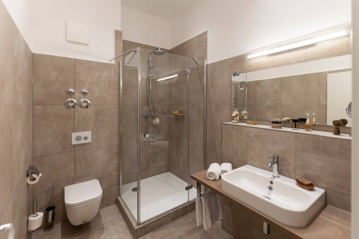 In den 45 bis 90 m² großen Ferienwohnungen bieten wir unseren Gästen hochwertig eingerichtete Wohn- und Schlafzimmer, sowie ein geräumiges Duschbad.