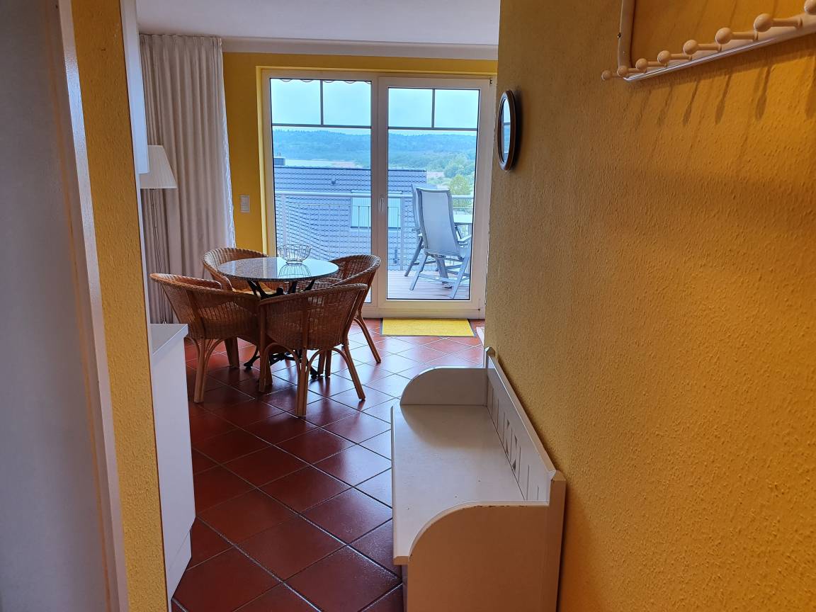 Die Unterkunft befindet auf dem Zinglingsberg. Die Hanglage auf einem der Binzer Hügeln garantiert aus vielen Wohnungen schöne Ausblicke auf den Binzer Ortskern, teilweise bis zum Schmacher See.