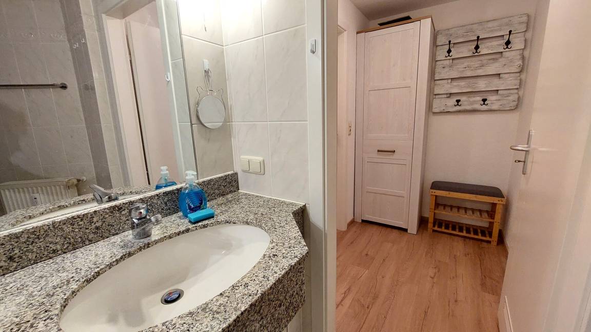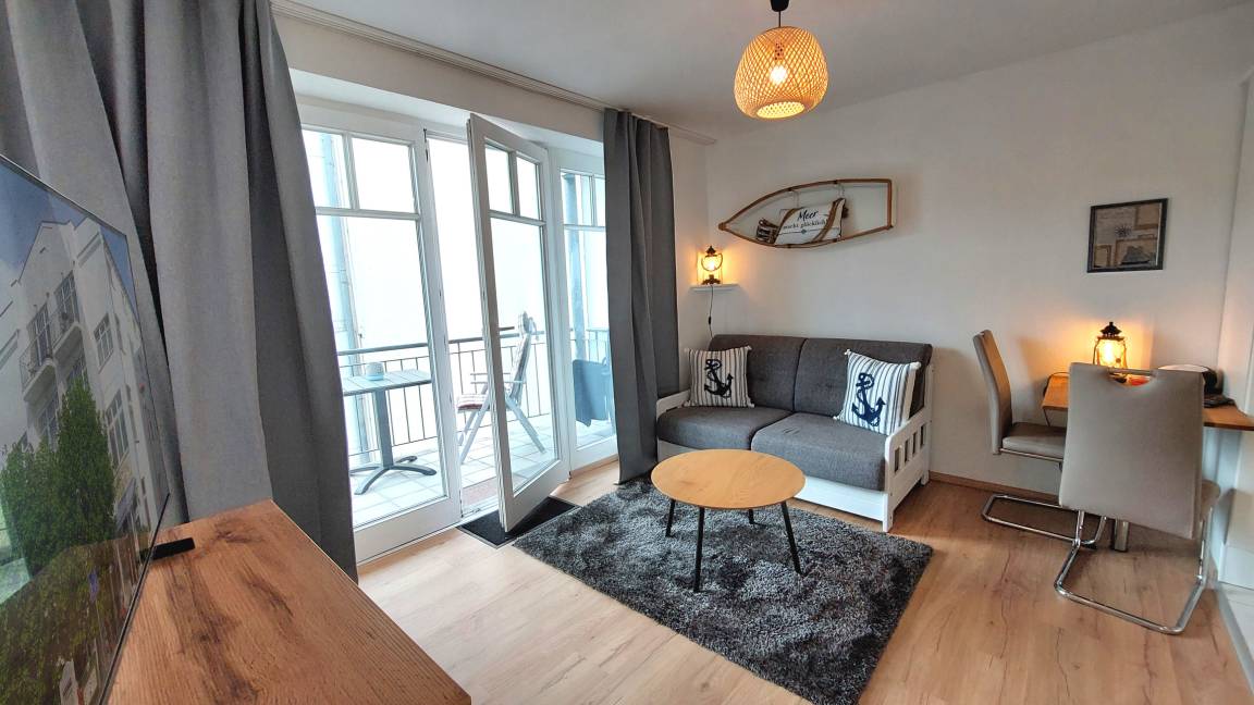 Das moderne Studio 23RB18 befindet sich im 2. Obergeschoss des Hauses Jahreszeiten und ist bequem per Aufzug erreichbar. Es wurde Anfang 2026 renoviert und neu möbliert. Im Flur befinden sich ein Kleiderschrank, eine Garderobe und ein Spiegel. Von dort aus gelangt man auch zum Badezimmer, das mit einer Dusche, einem WC und einem großen Waschtisch ausgestattet ist. Der kombinierte Wohn- und Schlafraum verfügt außerdem über einen Essbereich mit voll ausgestatteter Küchenzeile, bestehend aus einem Cerankochfeld, einem Backofen, einer Mikrowelle, einem Geschirrspüler und einem Kühlschrank mit Gefrierfach.