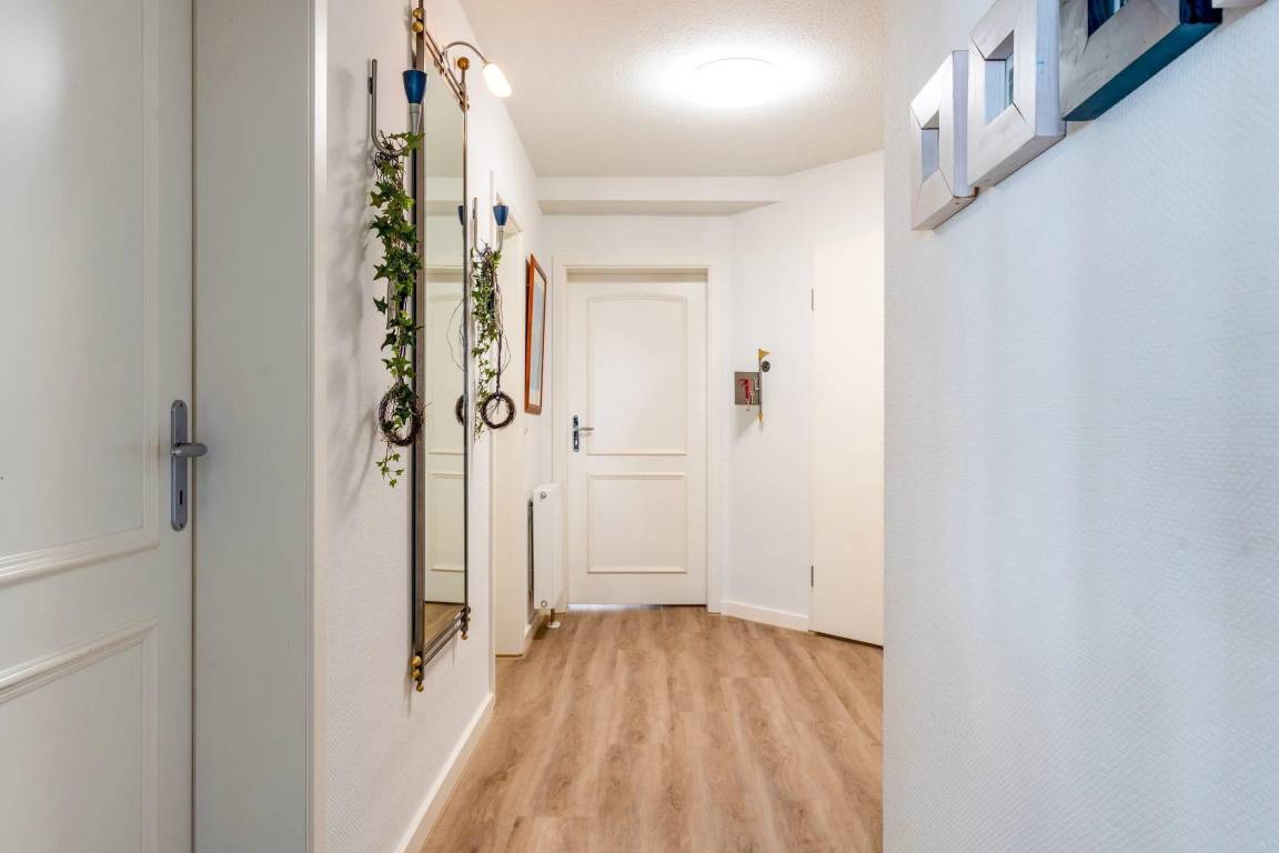Herzlich willkommen in Deinem Urlaubsdomizil! Die Wohnung 20 besticht durch ein offenes, modernes Raumkonzept. Der großzügige Wohnbereich ist mit einer gemütlichen Sitzecke und einem großen Smart-TV ausgestattet – ideal für entspannte Stunden nach einem Tag am Meer. Dank der Lage im Dachgeschoss genießt Du hier eine besonders private Atmosphäre und viel Tageslicht.