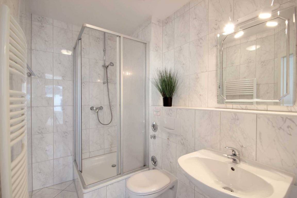 Ihre Nichtraucher-Ferienwohnung 90451 befindet sich im 1. Obergeschoss des Hauses Villa Hans. Die 2 Zimmer - Wohnung mit Balkon hat eine Größe von ca. 35 qm und ist mit bis zu 3 Personen belegbar. Neben dem Wohn- und Essbereich mit Sitzecke gibt es ein separates Schlafzimmer, eine Küchenzeile sowie ein Badezimmer mit Waschtisch, Dusche und WC. Das Schlafzimmer verfügt über ein Doppelbett, einen Kleiderschrank sowie Radiowecker. Im Wohnraum gibt es eine gemütliche Sitzecke mit Schlaffunktion für die 3. Person, Flachbild-TV sowie einen separaten Essplatz. Die Wohnküche ist mit einem Kühlschrank, Kochfeld, Kaffeemaschine, Wasserkocher, Toaster und diversen Kleingeräten ausgestattet. Ein sonniger in Richtung Süden gerichteter Balkon schließt sich dem Wohnbereich an. Ein wohnungseigener Außenstellplatz sowie eine Unterstellmöglichkeit für Ihre Fahrräder steht Ihnen am Haus zur Verfügung.