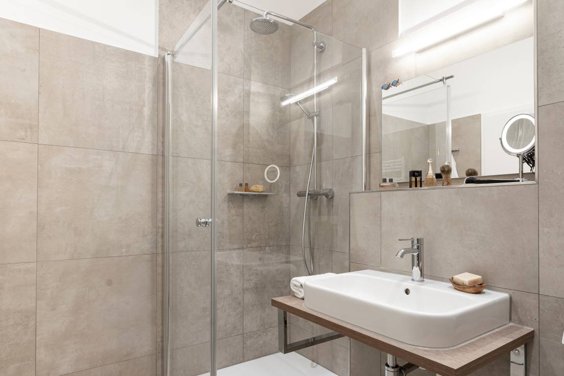 In den 45 bis 90 m² großen Ferienwohnungen bieten wir unseren Gästen hochwertig eingerichtete Wohn- und Schlafzimmer, sowie ein geräumiges Duschbad.