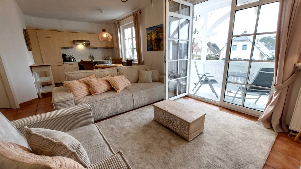 Die Unterkunft befindet auf dem Klünderberg. Die leichte Hanglage auf einem der Binzer Hügeln garantiert aus vielen Wohnungen schöne Ausblicke auf den Binzer Ortskern, teilweise bis zur Ostsee.
