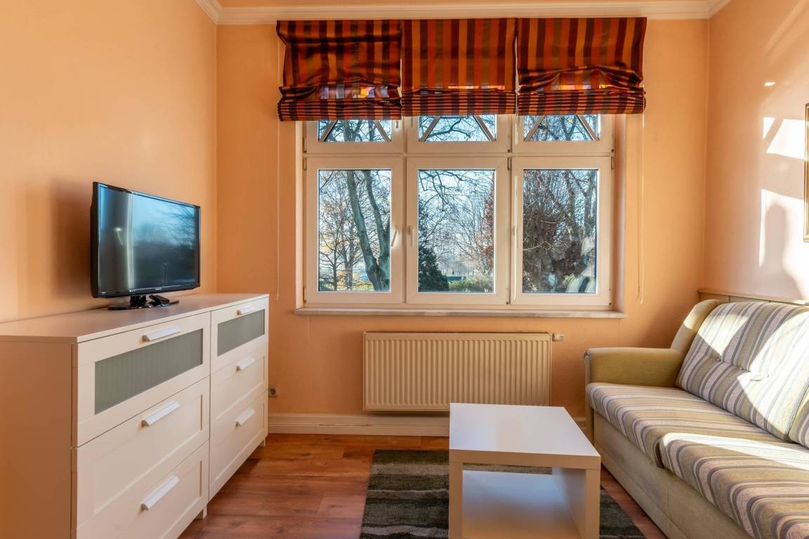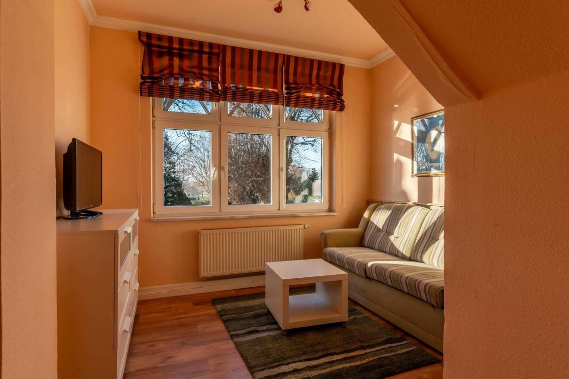 Die Ferienwohnung Poseidon in der Villa Venske, Binz, bietet auf 70 qm Platz für 4 Personen und ein Baby. Mit rustikal-mediterranem Stil, zwei Schlafzimmern, Balkon, Küche, Tageslichtbad, TV in Wohn- und Schlafräumen, Parkplatz am Haus