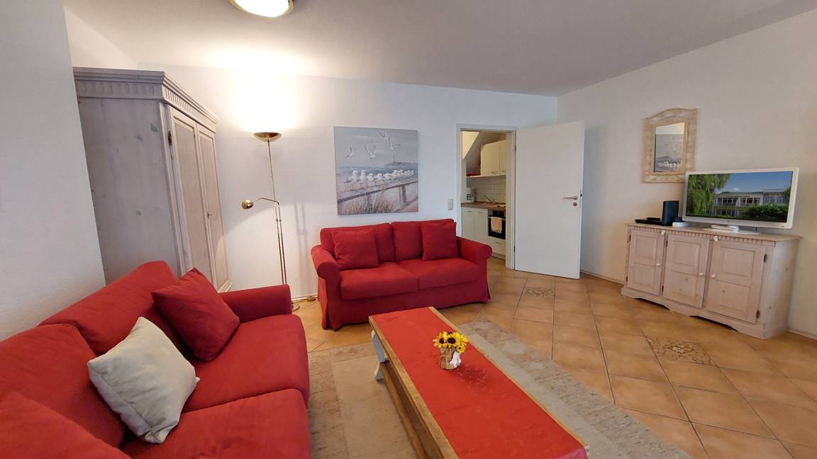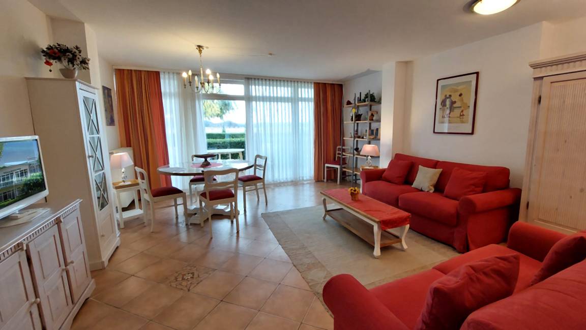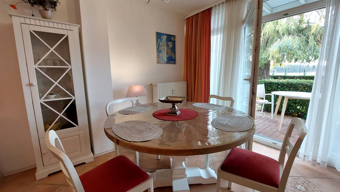Die Ferienwohnung 37RB6 befindet sich im Erdgeschoss der "Villa Seerosen" und bietet auf 48 m² Platz für maximal 4 Personen. Sie verfügt über eine Terrasse mit direktem Blick zum Schmachter See. Diese Nichtraucher-Unterkunft verfügt über ein Badezimmer mit Dusche und ein Schlafzimmer mit Doppelbett. Im Wohnbereich gibt es zudem ein Schlafsofa, auf dem bis zu 2 weitere Personen übernachten können. Es gibt einen gemütlichen Essbereich und eine moderne Küchenzeile mit Geschirrspüler, Backofen, 2-Platten-Cerankochfeld und einem Kühlschrank mit Gefrierfach.
