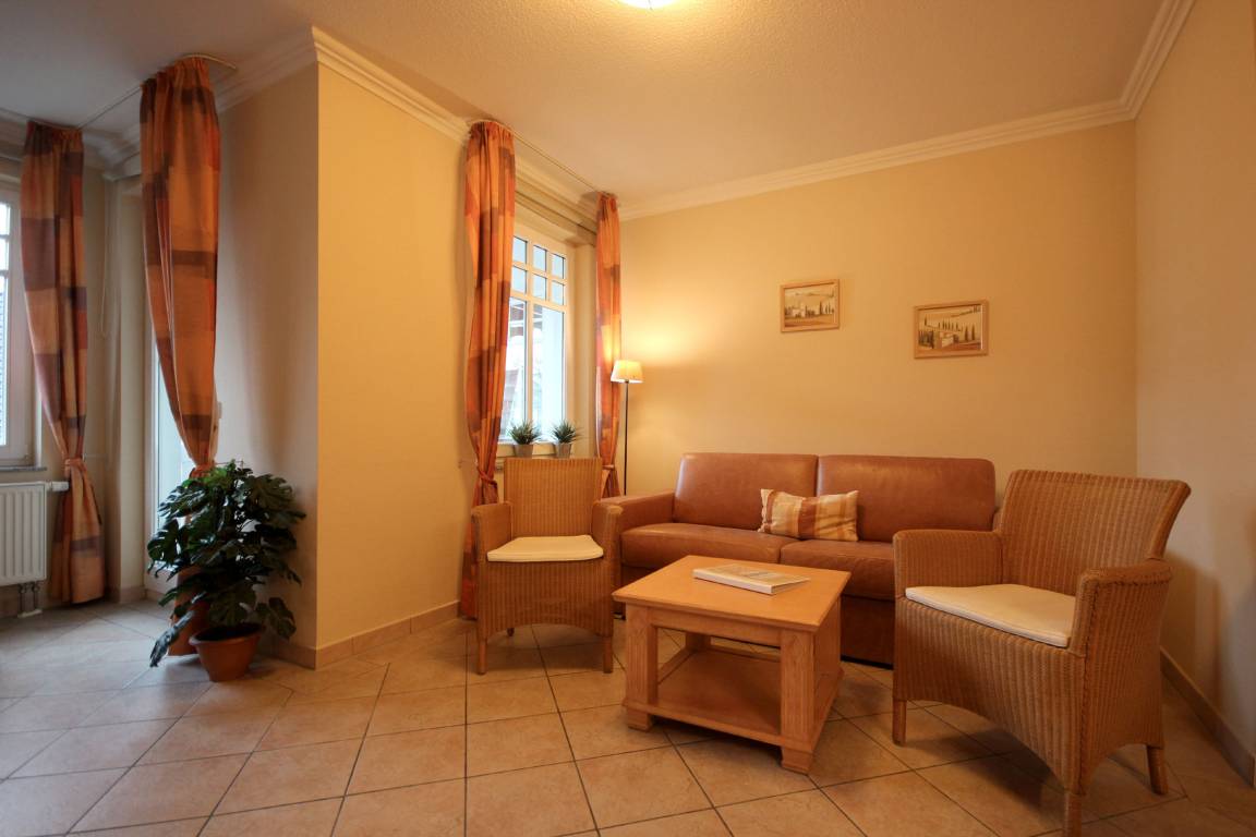 Ihre Nichtraucher-Ferienwohnung 21RB7 befindet sich im 1. Obergeschoss. Die 2-Raum-Komfortwohnung hat eine Größe von ca. 48 qm und ist mit bis zu 4 Personen belegbar. Auf dem Westbalkon der Wohnung können Sie die Abendsonne genießen. Neben dem Wohnraum mit integrierter Küche gibt es einen separaten Schlafraum, Flur und ein Badezimmer mit Waschtisch, Dusche und WC. Im Schlafraum befindet sich ein Doppelbett, Flachbild-TV und ein Kleiderschrank. Im Wohnraum können auf dem Schlafsofa (160x200) weitere zwei Personen schlafen. Sie finden dort auch Flachbild-TV, einen kostenfreien WLAN-Zugang und Radio/CD-Spieler. Die Küche ist mit Geschirrspülmaschine, Cerankochfeld, Backofen, Mikrowelle, Kühlschrank und diversen Kleingeräten komplett ausgestattet. Ein Kinderhochstuhl, ein Kinderbett und ein Zustellbett ( für eine evt. 5. Person ) sind auf Anfrage ebenfalls vorhanden. Ein überdachter Stellplatz steht Ihnen im nahe gelegenen Parkhaus (zwei Gehminuten) kostenlos zur Verfügung.