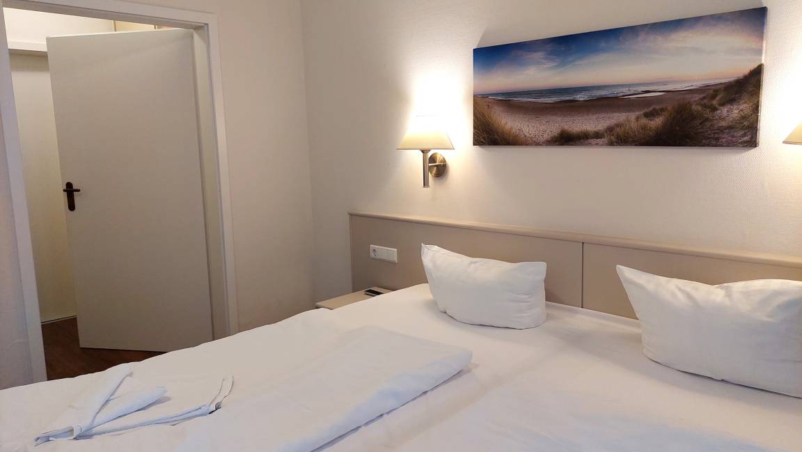 Die 2-Raum-Nichtraucherwohnung 16RB15 befindet sich im Erdgeschoß des Gebäudes Düne 3. Mit einer Größe von 61 qm bietet sie Platz für bis zu 4 Personen.