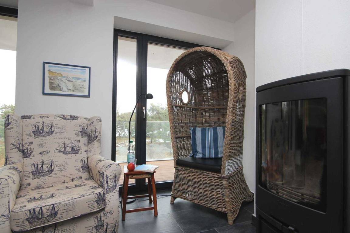 Die Wohnung teilt sich auf in einen Flur mit Garderobe, ein großzügiges Wohnzimmer, ein Schlafzimmer, ein Badezimmer sowie eine moderne Wohnküche mit Essplatz für 4 Personen. Im Wohnbereich erwartet Sie ein gemütlicher Sitzbereich mit einem hochwertigen Sofa der Marke ligne roset, Flachbild-TV, WLAN, Musikanlage sowie ein Kamin mit gemütlicher Sitzecke und erstklassigen Gardinen gefertigt aus Spinnaker-Segeltuch. Von hier gelangen Sie auf den angrenzenden Frühstücksbalkon. Im Küchenbereich erwarten Sie ein Backofen, Cerankochfeld, Kühlschrank, Geschirrspüler, Kaffeemaschine, Wasserkocher, Toaster und weitere Küchenhelfer. Der Schlafbereich zur Meerseite verfügt über ein Doppelbett, einen großen Kleiderschrank mit Spiegeltüren sowie Verdunklungsstoffe für einen angenehmen Schlaf. Das Bad ist mit einer verglasten Regendusche, Waschbecken und WC ausgestattet. Einen überdachten und kostenfreien Stellplatz finden Sie im Parkhaus direkt nebenan. Als weiteres