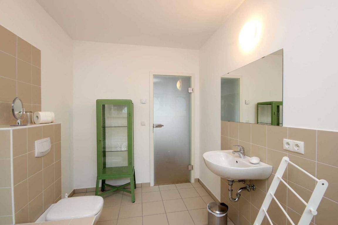 Das gemütliche Appartement, mit Fußbodenheizung in allen Räumen, erreichen Sie über einen eigenen Zugang. Von hier aus gelangen Sie über den Flur mit Garderobe und Spiegel in den großzügigen Wohnraum mit Zugang zur Terrasse, einer schönen Ledereckcouch, Flachbildfernseher sowie Holzkamin. Die separate Küche, ebenso mit Zugang zur Terrasse, erwartet Sie mit einer Kochzeile sowie Essplatz. Die technische Ausstattung umfasst ein 2-Platten Cerankochfeld, Kühlschrank, Backofen, Kaffeemaschine, Wasserkocher und Toaster. Im Schlafzimmer erwartet Sie ein Doppelbett sowie ein Kleiderschrank. Das Tageslichtbad ist ausgestattet mit Waschbecken, ebenerdiger Regendusche, Kosmetikspiegel sowie WC. Über eine Treppe gelangen Sie vom Flur in den oberen Teil der Wohnung. Hier finden Sie ein weiteres Schlafzimmer mit Einzelbett, Sitzmöglichkeit und Kommode sowie ein zusätzliches Tageslichtbad mit Waschbecken, Badewanne, Kosmetikspiegel und WC vor.