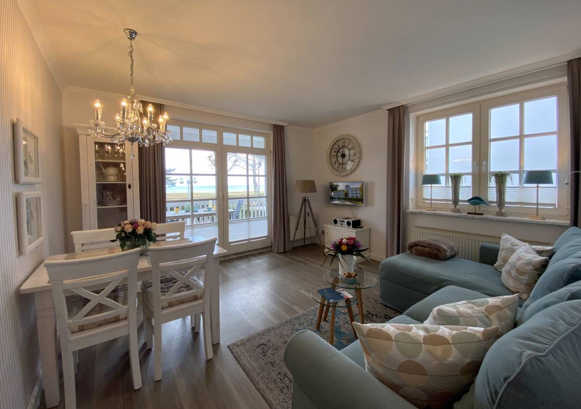Das komfortable Erdgeschossappartement 213RB23 ist 50 qm groß und für bis zu 4 Personen eingerichtet. Vom hellen Wohnzimmer sowie vom überdachten Balkon mit dazugehörigen Möbeln haben Sie einen direkten Panoramablick auf die Ostsee bis hin zu den berühmten Kreidefelsen.