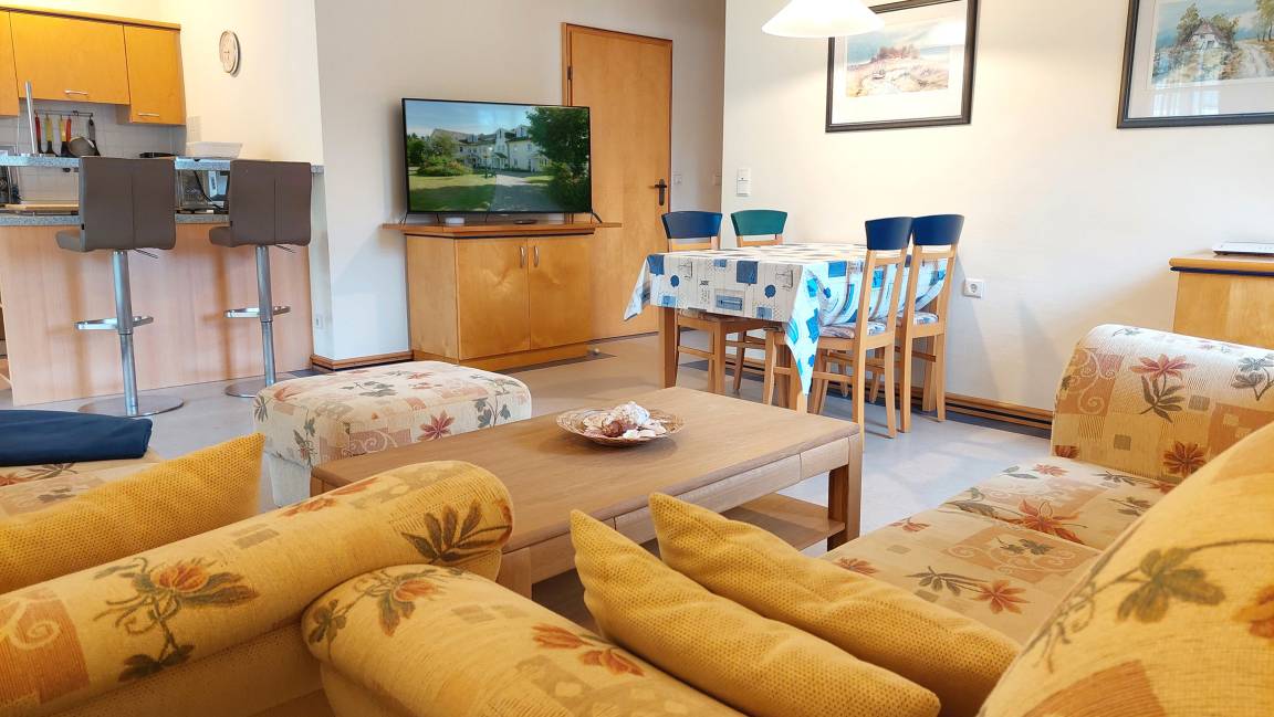 Die Ferienwohnung 16RB145 befindet sich im ersten Obergeschoss des Hauses 19 im "Dünenpark Binz" und bietet auf 59 m² Platz für maximal 2 Personen.