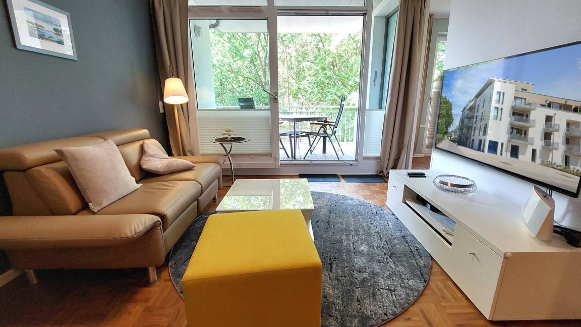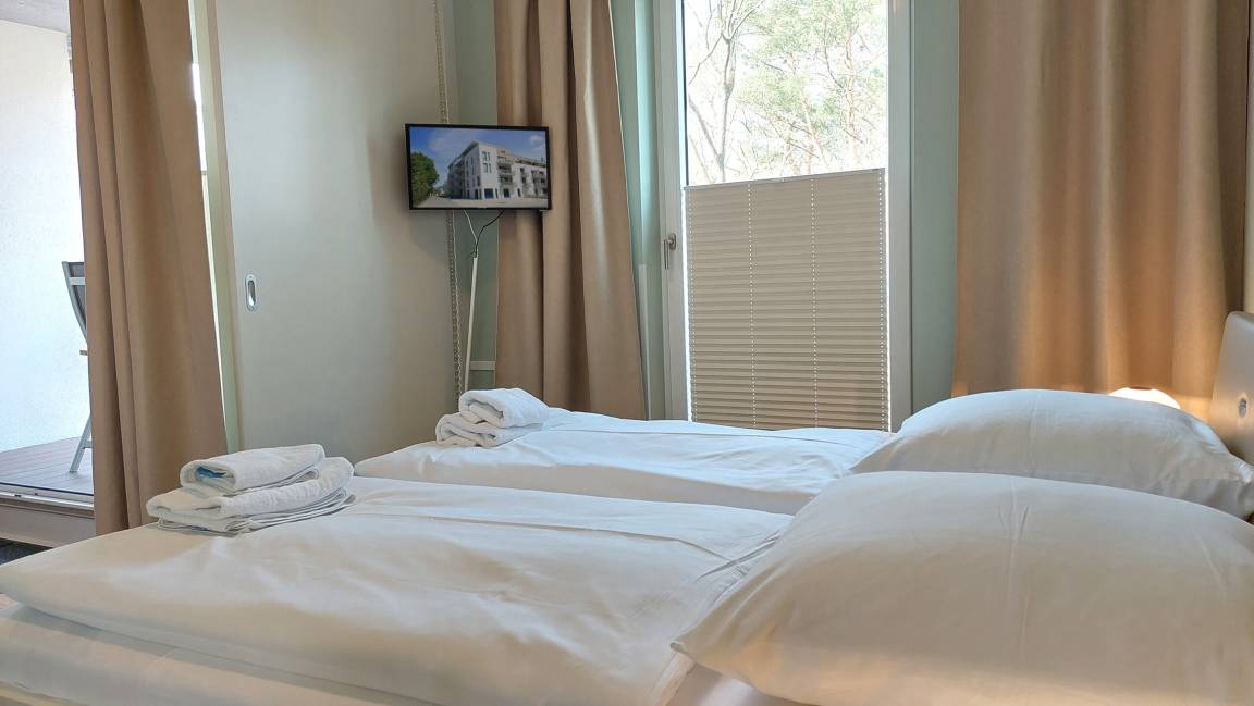 Die 2024 neu eingerichtete 2-Raum-Nichtraucherwohnung 207RB126 befindet sich im 2. Obergeschosses des Aufgangs 30 c im Dünenresort.
