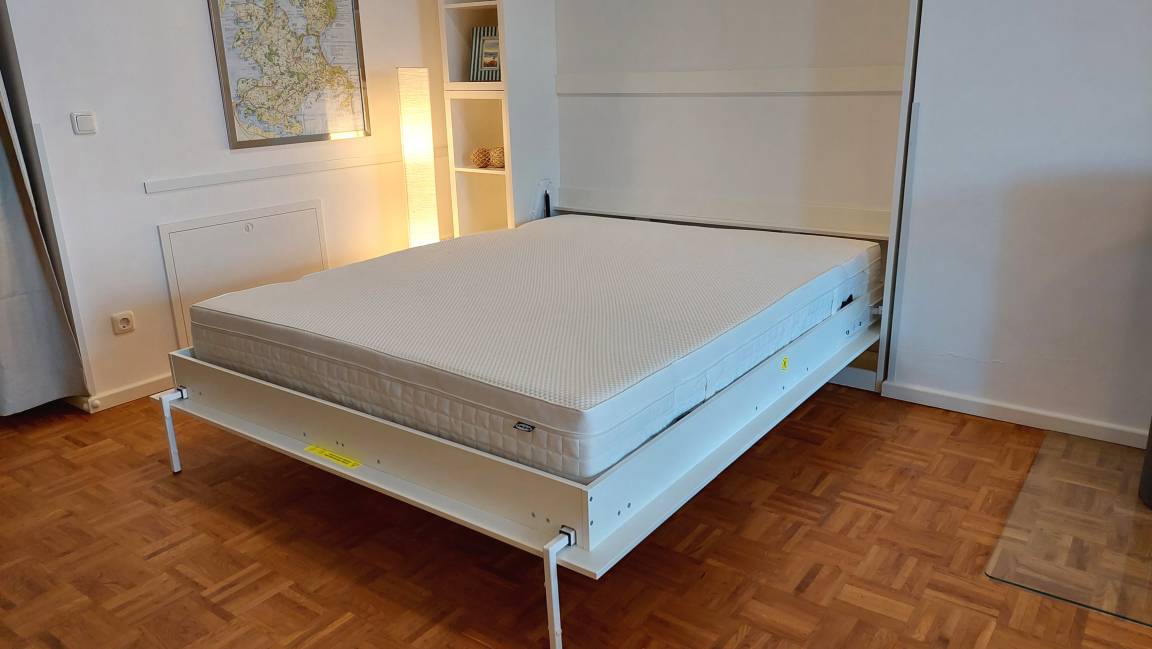 Eine hochwertiges Schrankbett samt blickdichter Vorhänge machen dies möglich.