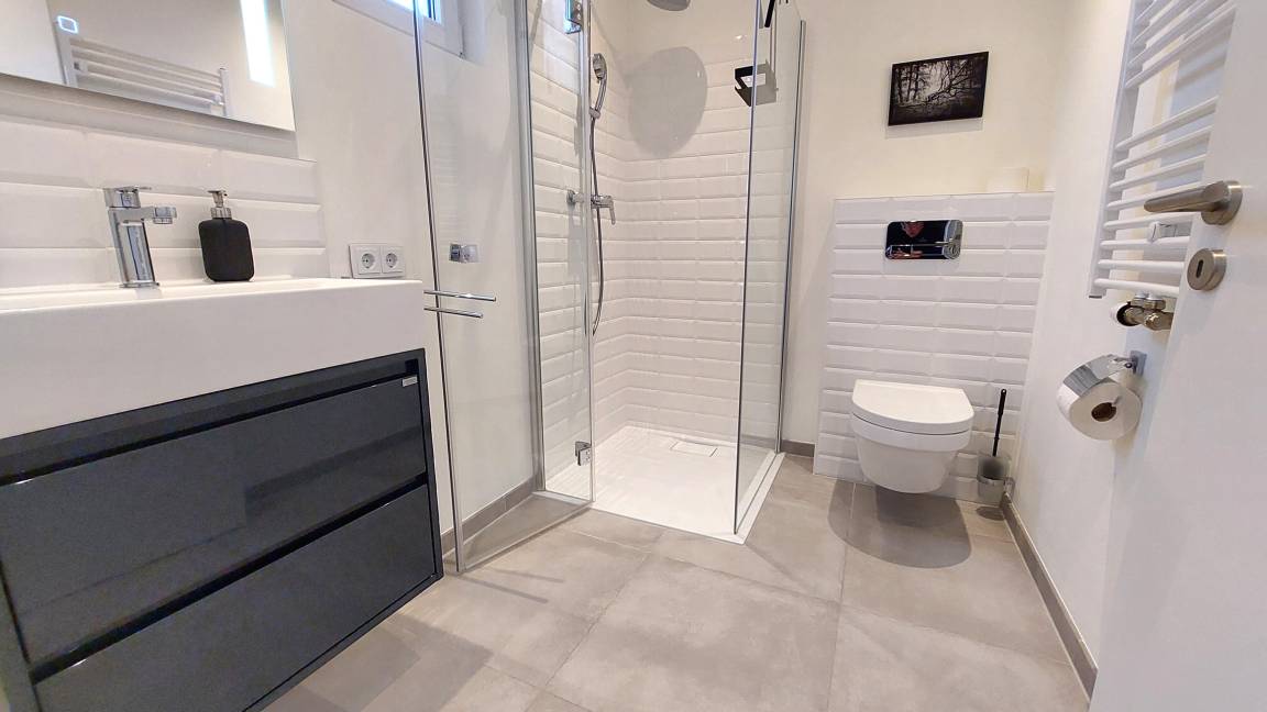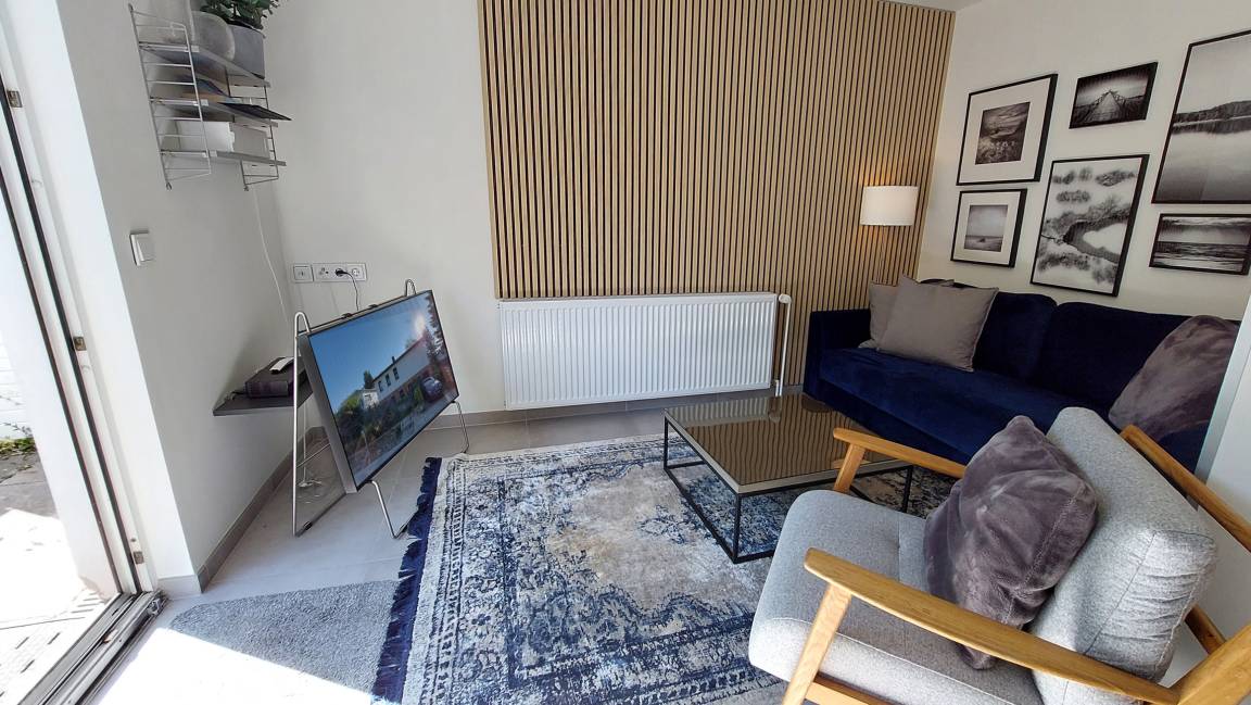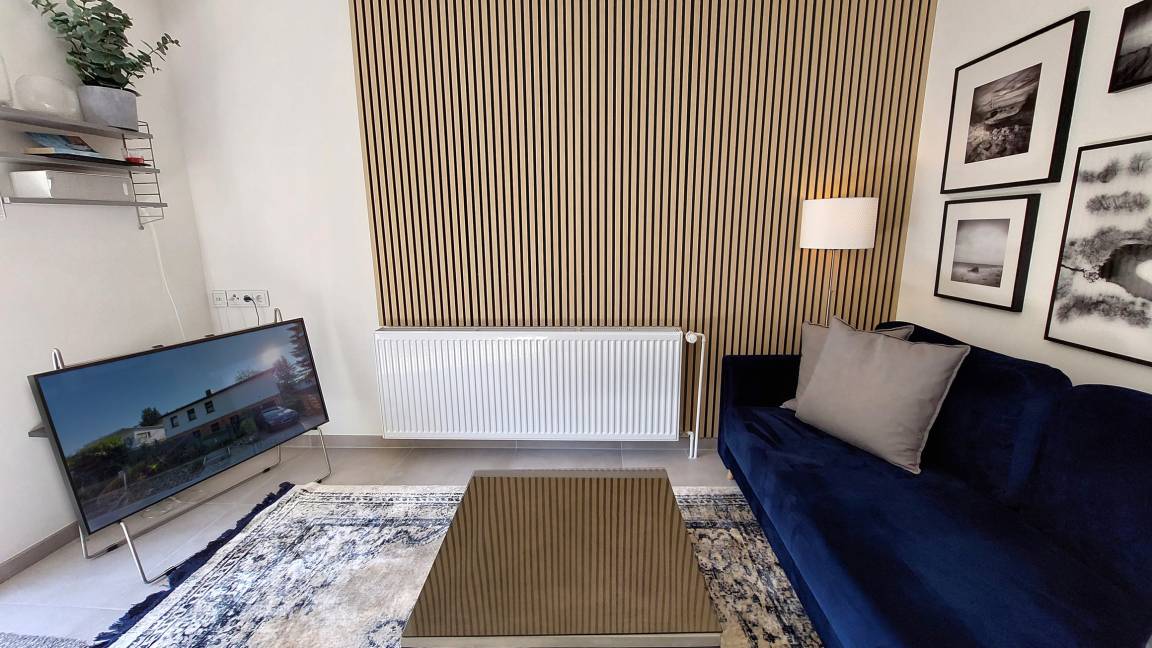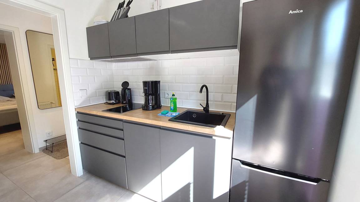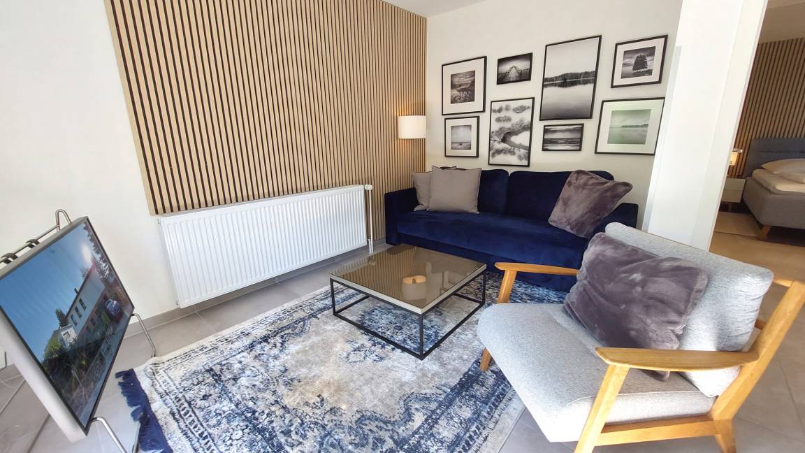 Diese exklusive 2-Raumwohnung 90807 Nikola erwartet Sie mit ca. 40 qm und bietet Platz für bis zu 2 Erwachsenen und 2 Kind. Zudem verfügt sie über eine kleine angrenzende Sonnenterrasse. Ein Gefühl von „Zuhause" erwartet Sie bereits beim Betreten dieser modernen und mit hochwertiger Einrichtung ausgestatteten Wohnung. Über den hellen Flur erreichen Sie bequem alle Räume des Appartements. Das Wohnzimmer begrüßt Sie mit einer attraktiven Sitzecke, großem SMART-TV, WLAN, Internetradio, integrierter Küchenzeile und ein raffinierter sowie mobiler Esstisch. Ebenso gelangen Sie vom Wohnbereich auf die angrenzende Terrasse. Das geräumige Schlafzimmer mit komfortablem Doppelbett, großem Kleiderschrank, einer zusätzlichen Kommode und Verdunklungsmöglichkeiten versprechen eine erholsame Nachtruhe. Ein weiteres Highlight ist das freundliche Tageslichtbad, welches mit einer ebenerdigen Dusche, Waschtisch und einer Handtuchheizung ausgestattet ist. Rundum eine erstklassige Wohnung zum Abschalten vom Alltag und Genießen des Urlaubes. Ihr kleiner Vierbeiner (max. 30 cm Schulterhöhe) ist, gegen eine Gebühr, herzlich willkommen. Ein PKW-Stellplatz steht Ihnen direkt am Haus zur Verfügung.