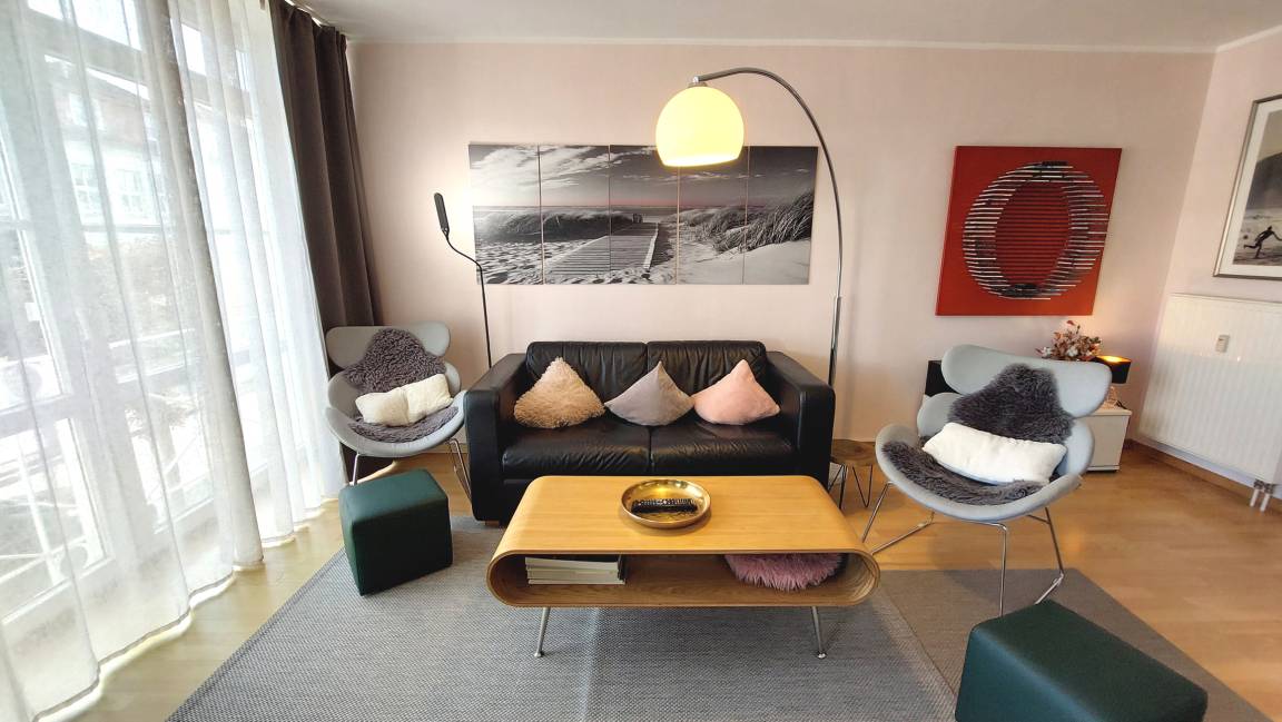 Mit dem Nichtraucherapartment 90860 erwartet Sie eine moderne und familienfreundliche 3-Raumwohnung mit zwei vollwertigen Bädern und Schlafzimmern. Die Wohnung ist 60 qm groß und befindet sich im ersten Obergeschoß im Haus 1 des Wohnparks und ist für 4 Personen ausgelegt.