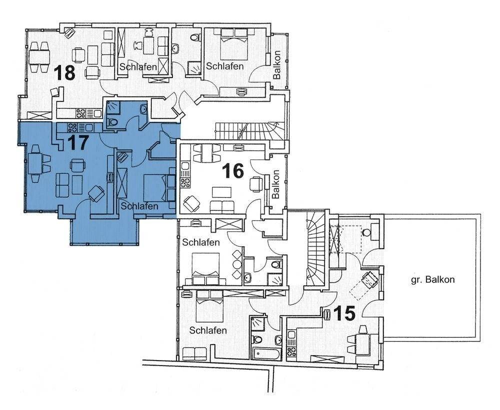 Den Balkon erreichen Sie über den Wohnbereich und dem Schlafzimmer.