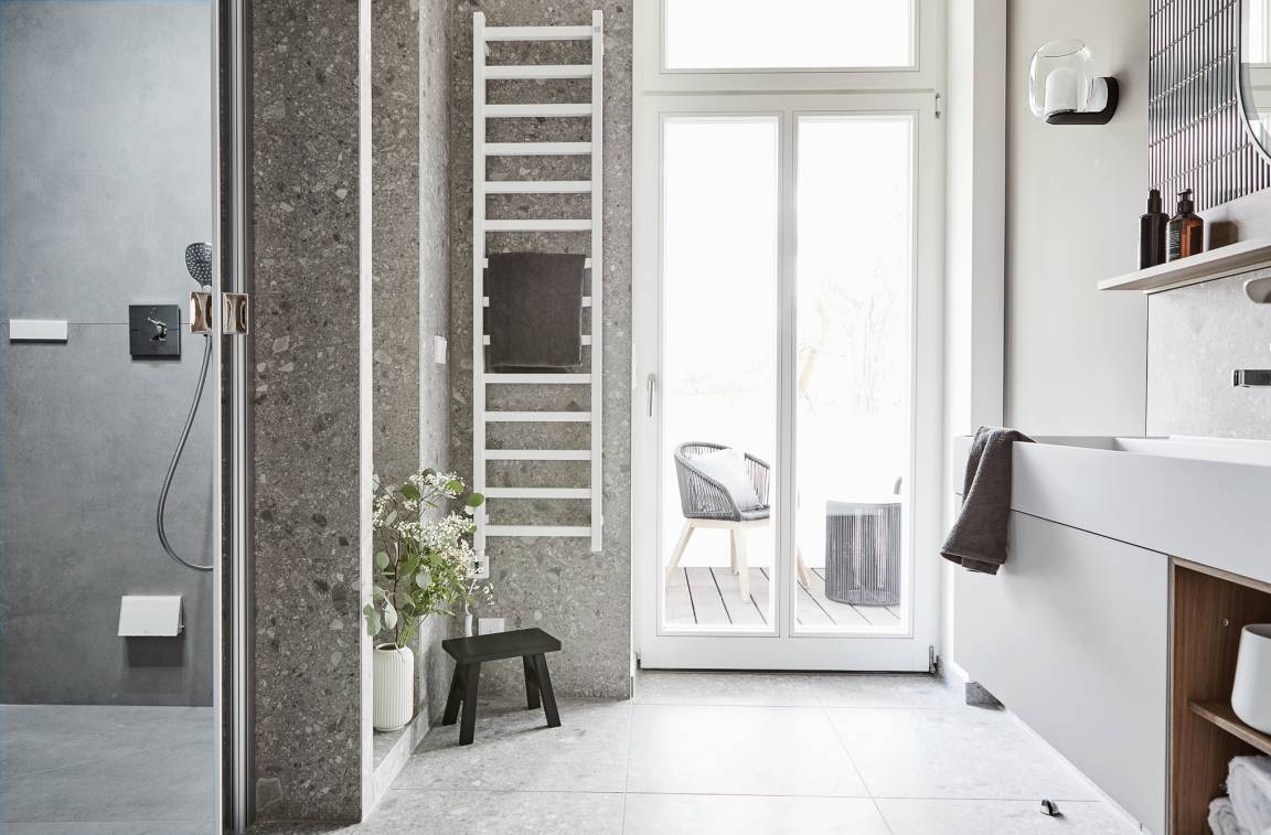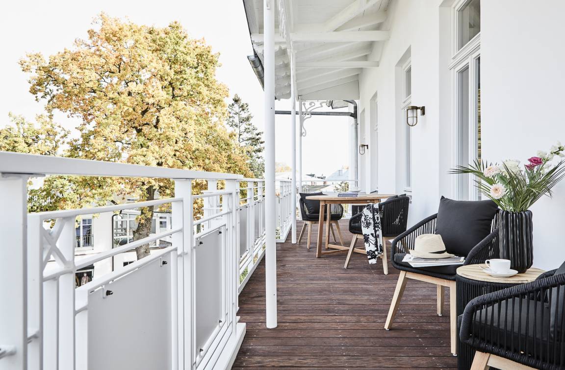 Die Deluxe Wellness Suite mit Balkon und Dampfbad befindet sich in der 1. Etage und verfügt über geräumige ca. 83 m², über 2 Schlafzimmer und einen separaten Wohnraum, einer offenen Küchenzeile sowie 2 Badezimmer und 1 Dampfbad.