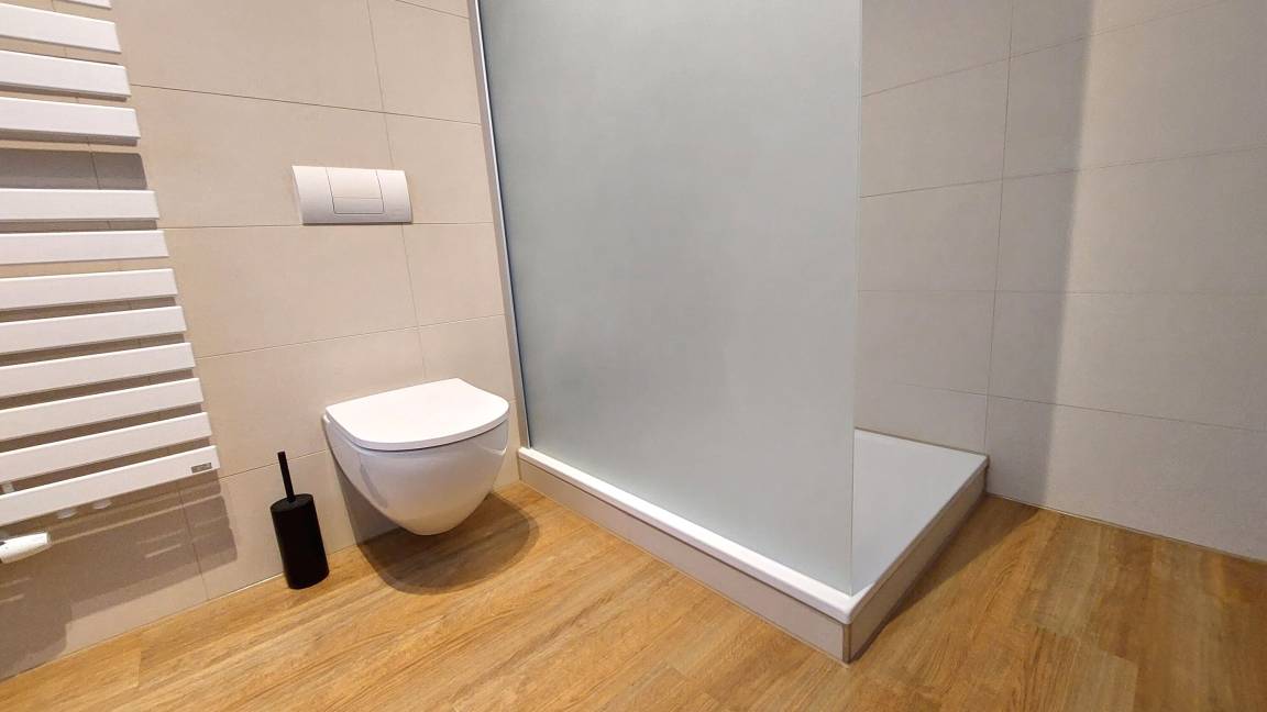 Neben dem Wohnraum mit integrierter Küche gibt es zwei separate Schlafräume, ein Badezimmer mit Waschtisch, Dusche und WC und eine separate Gästetoilette. Beide Schlafräum biete jeweils 2 Schlafgelegenheiten, einen Kleiderschrank und Zugang zum zweiten Balkon.